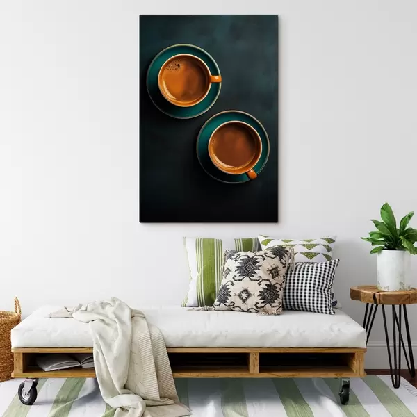 Paveikslas Du puodeliai kavos tamsiame fone Nr s42190