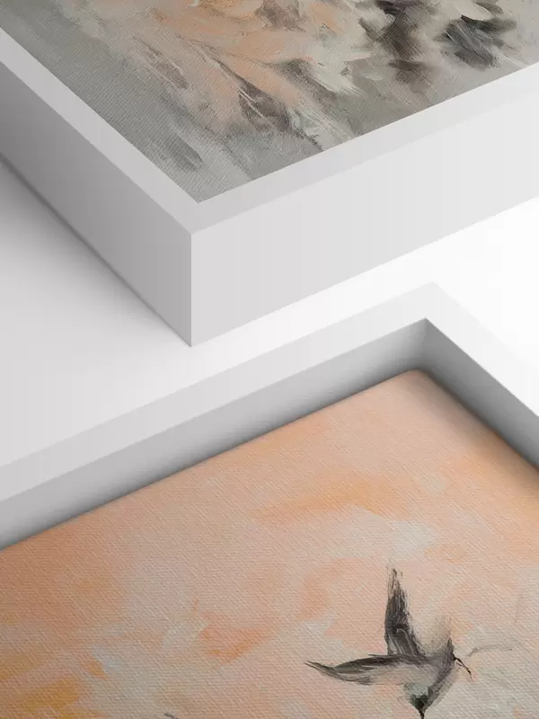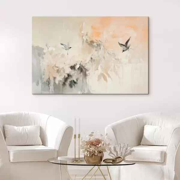 Paveikslas Abstrakcija su skrendančiais paukščiais, akrilo stilius, rožinės ir smėlio spalvos Nr s42205