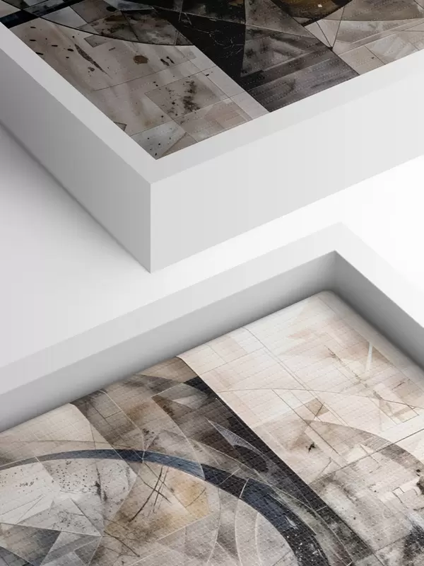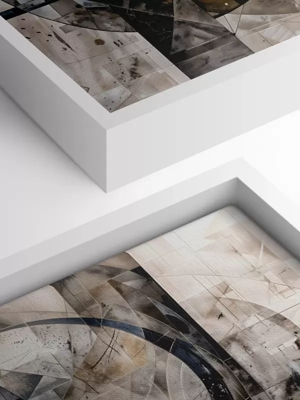 Paveikslas Abstrakti šiuolaikinė geometrinė kompozicija su persidengiančiomis formomis ir pilkų, juodų ir smėlio atspalvių spauda Nr s42212