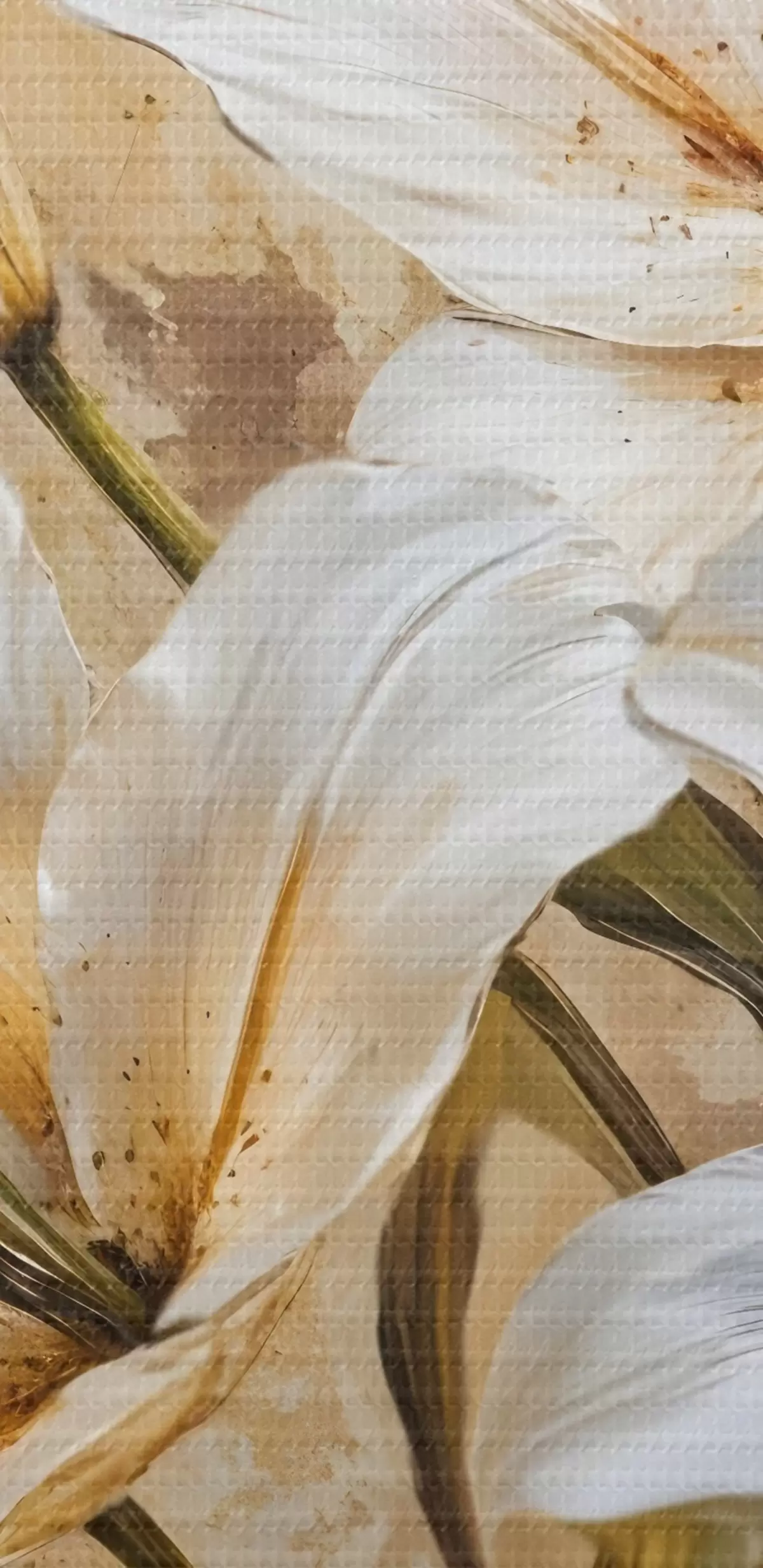 Paveikslas Baltos lelijos su geltonais centrais tekstūriniame smėlio spalvos fone Nr s42216