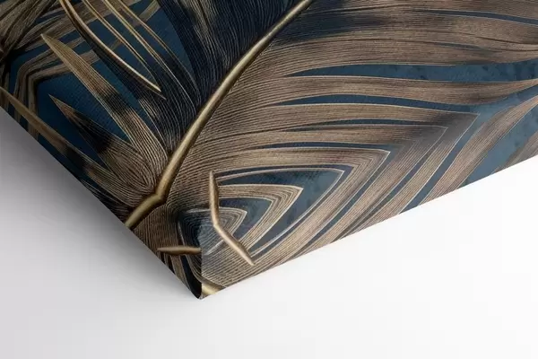 Paveikslas Geltonos ir smėlio spalvos abstrakčios dekoratyvinės plunksnos, plūduriuojančios tamsiai mėlyname tekstūriniame fone Nr s42218