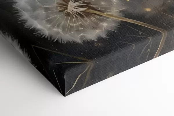 Paveikslas Kiaulpienių žiedai su puriomis baltomis sėklų galvutėmis tamsiame fone sukuria magišką atmosferą Nr s42235