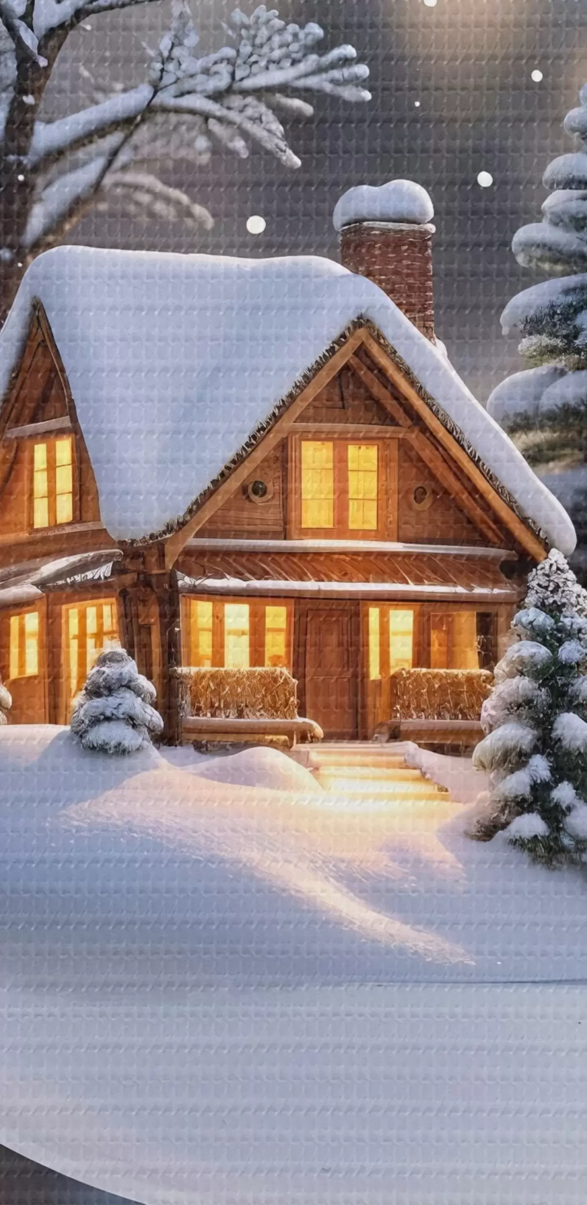 Paveikslas Stiklinis kalėdinis gaublys su snieguotu žiemos kraštovaizdžiu viduje, kuriame pavaizduotas jaukus namelis miške su pušimis Nr s42236