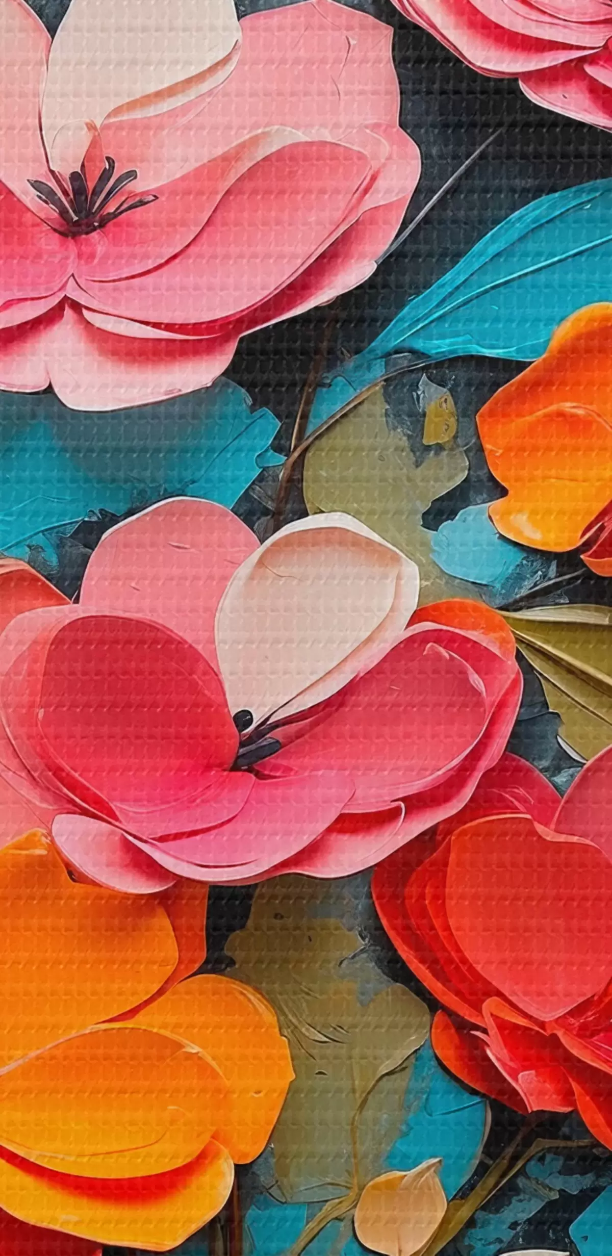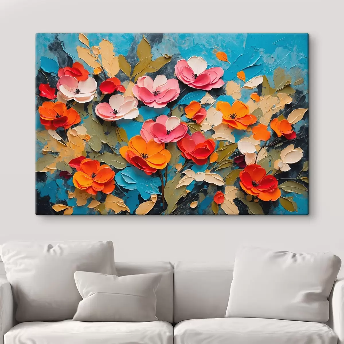 Paveikslas Gėlės ir lapai mėlyname fone Nr s42255