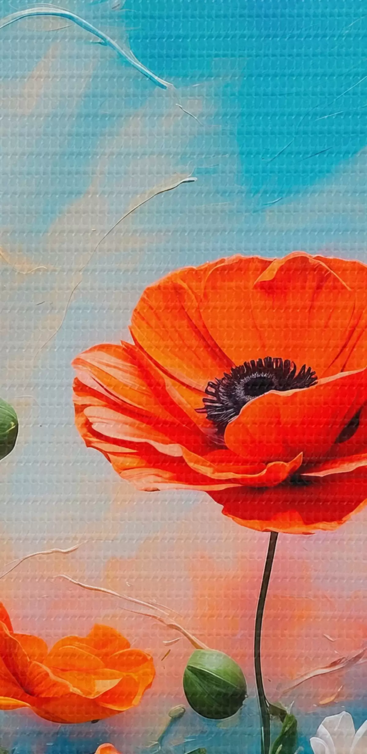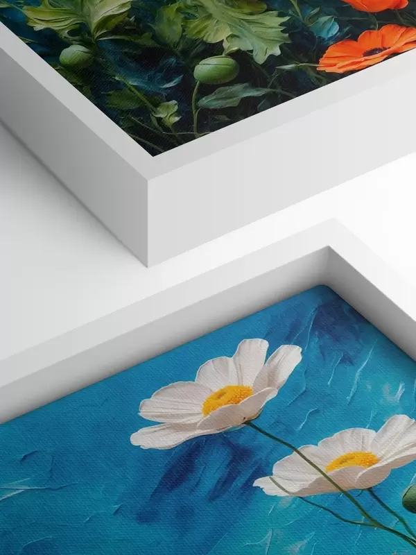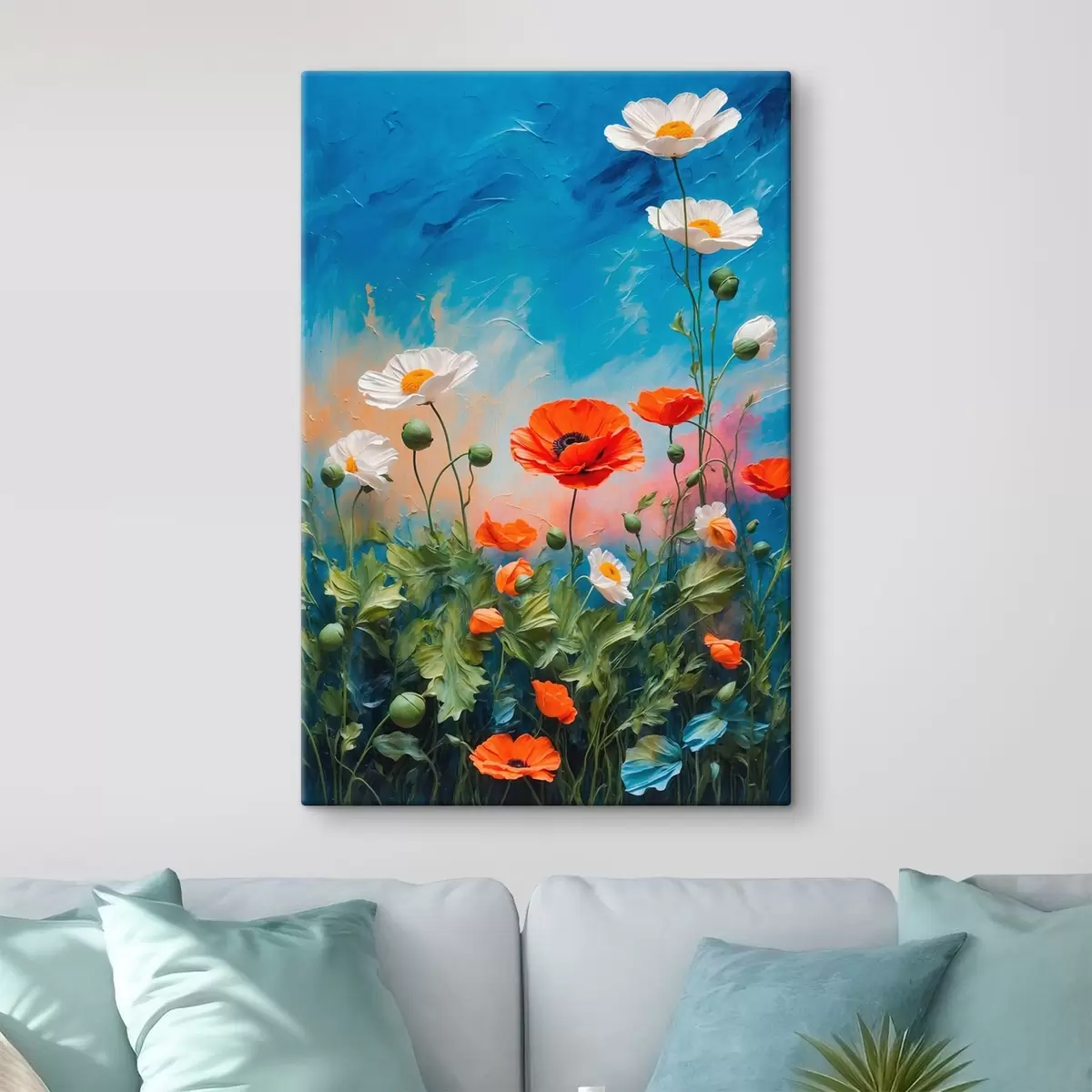 Paveikslas Margaretės ir aguonos mėlyname fone Nr s42261