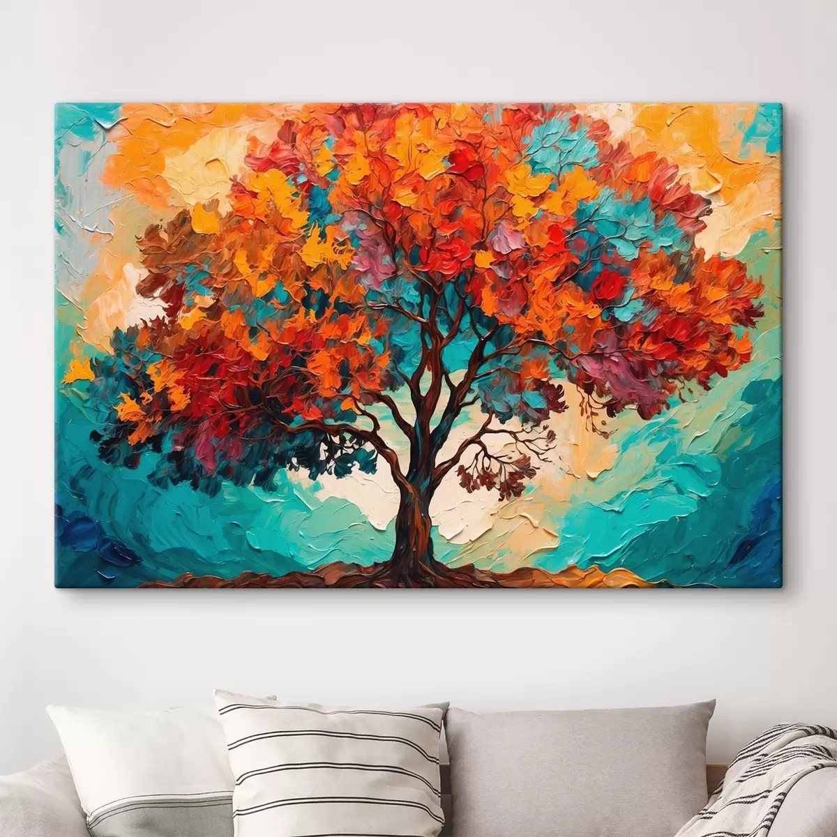 Paveikslas Medis oranžinės ir mėlynos spalvos fone aliejinės tapybos stiliumi Nr s42267