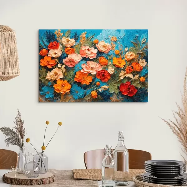 Paveikslas Įvairios gėlės abstrakčiame mėlyname fone aliejinės tapybos stiliumi Nr s42269