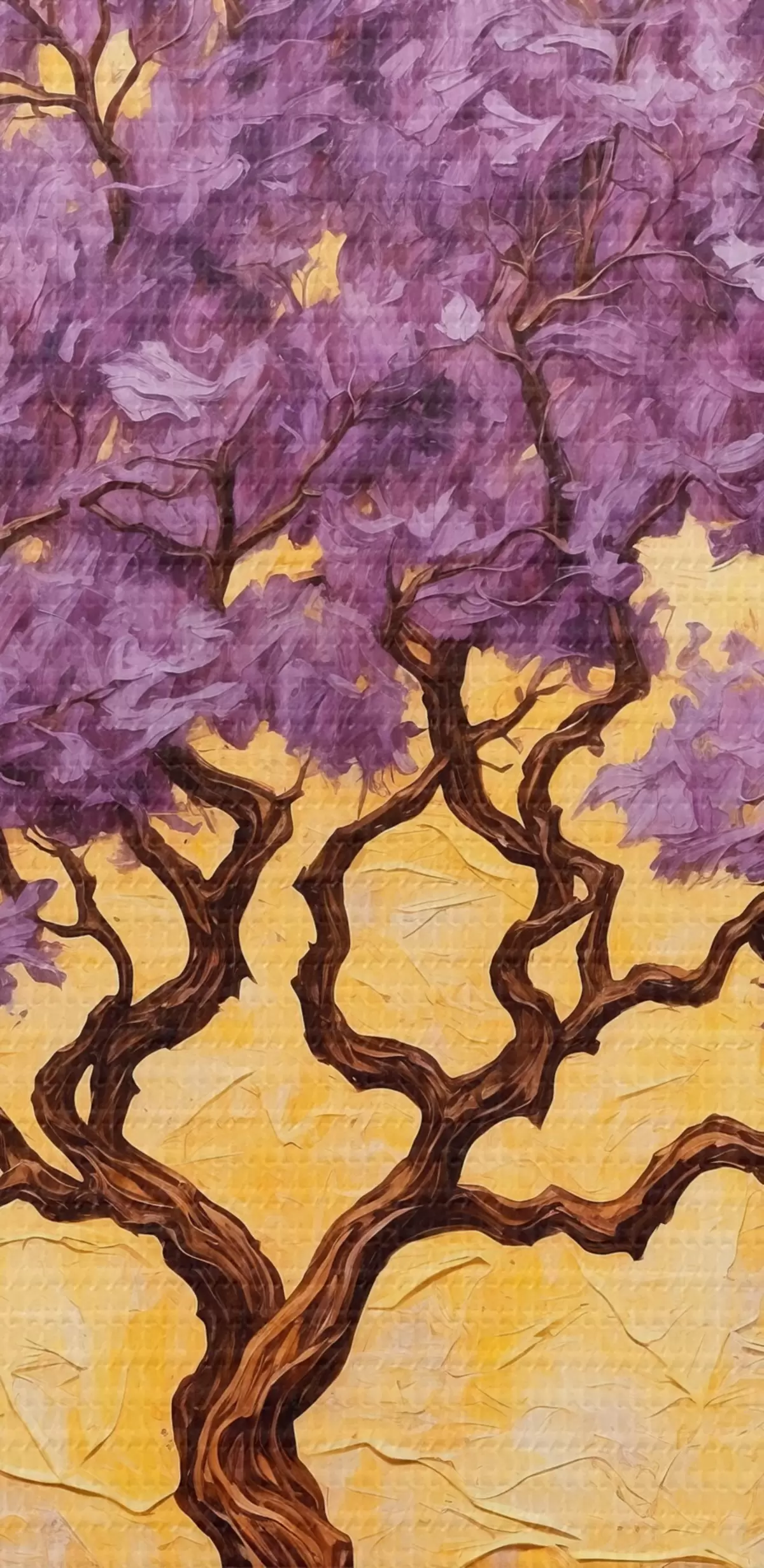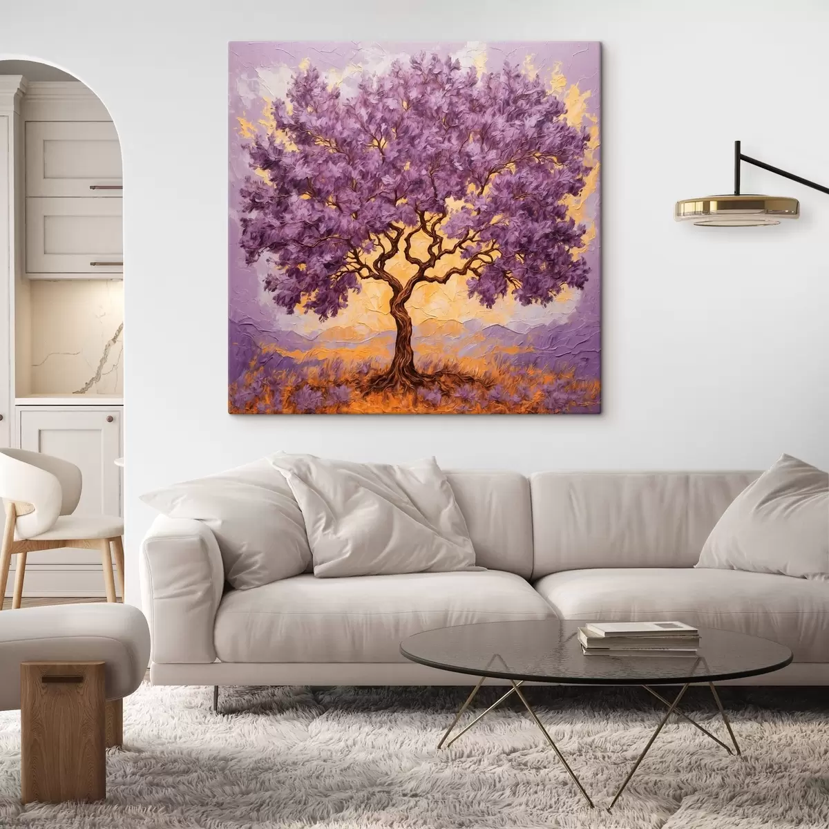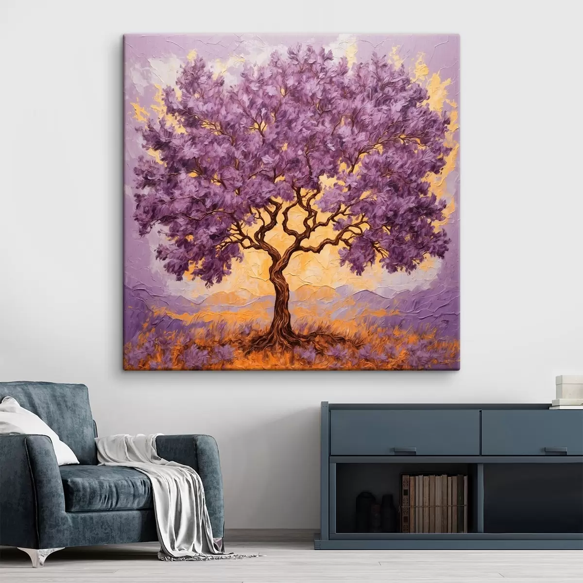 Paveikslas Violetinis medis geltonos spalvos fone Nr s42272