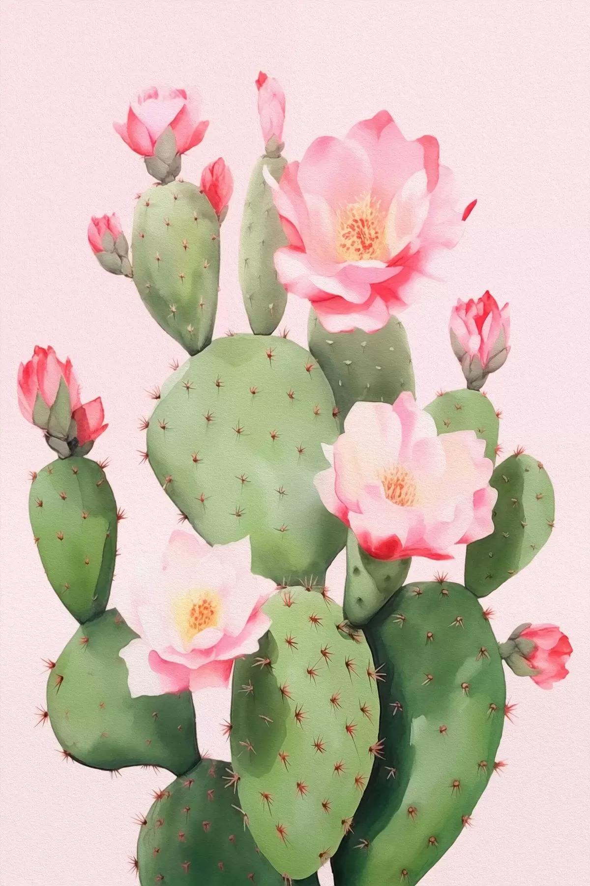 Paveikslas Kaktusas ir rožinės gėlės Nr s42313