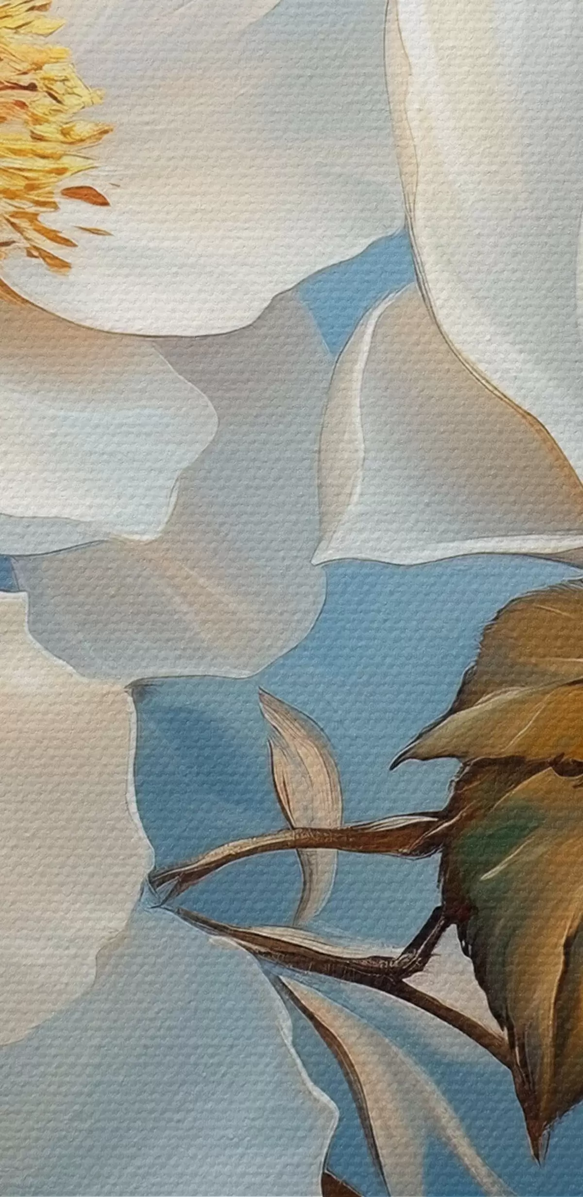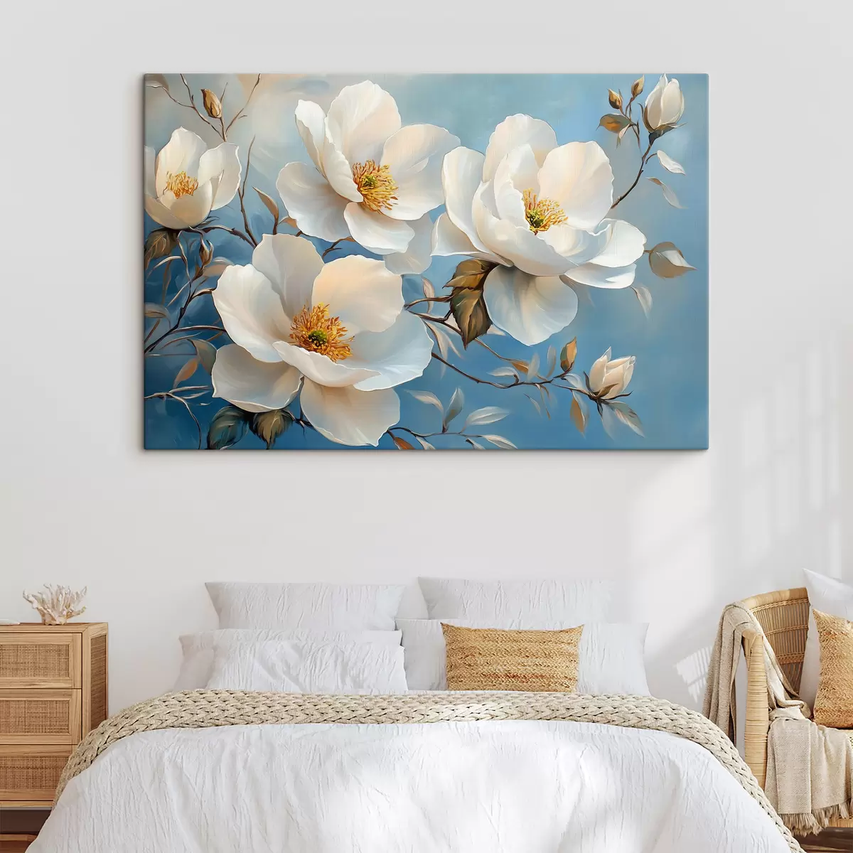 Paveikslas Didelės baltos gėlės mėlyname fone Nr s42321