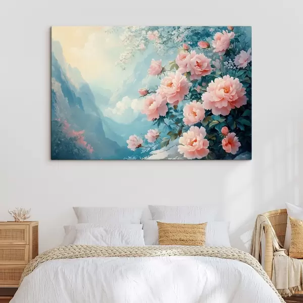 Paveikslas Mėlyni kalnai ir gėlės pirmame plane Nr s42324