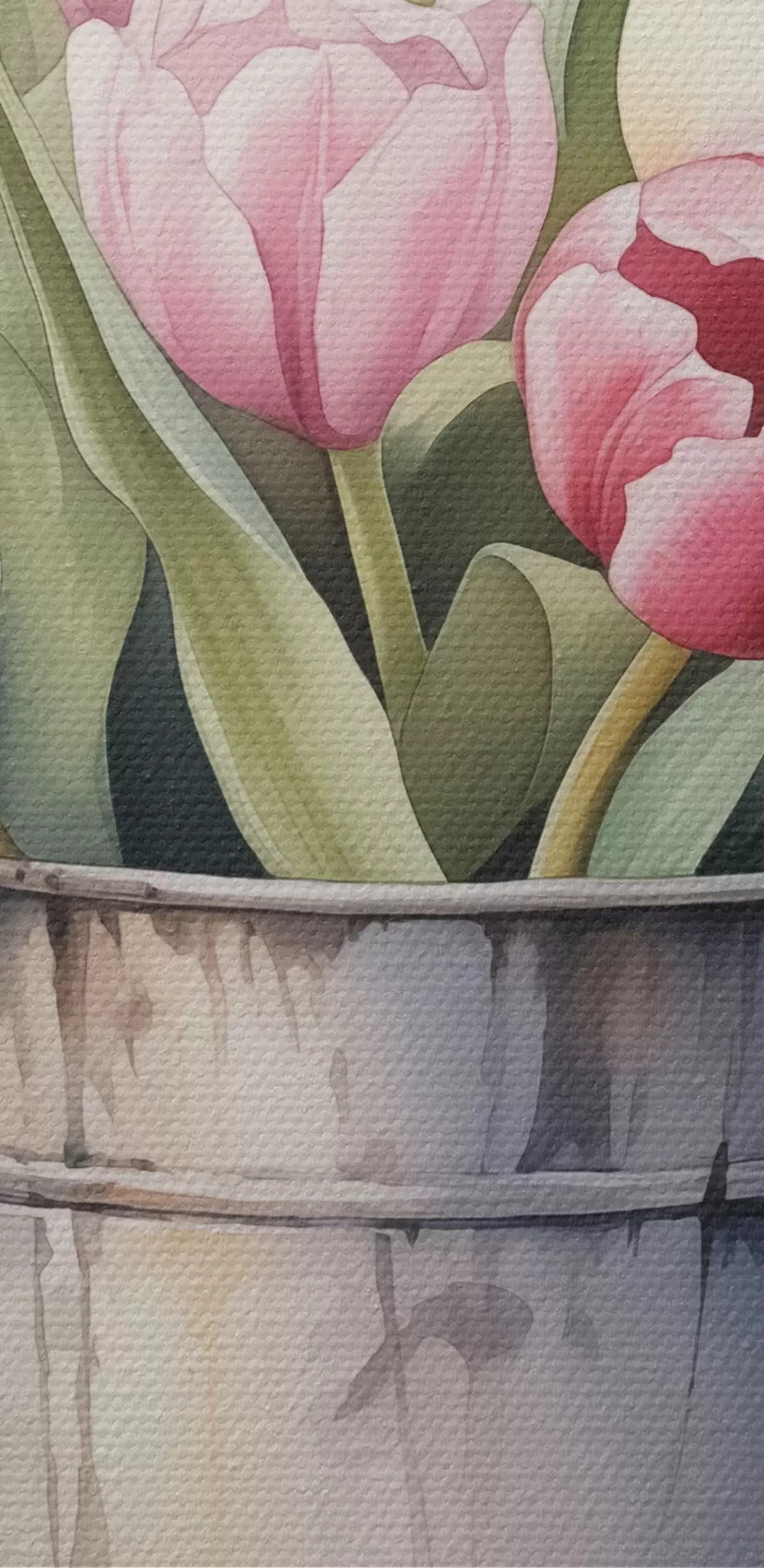 Paveikslas Tulpių puokštė kibirėlyje, imituojanti akvarelę Nr s42353