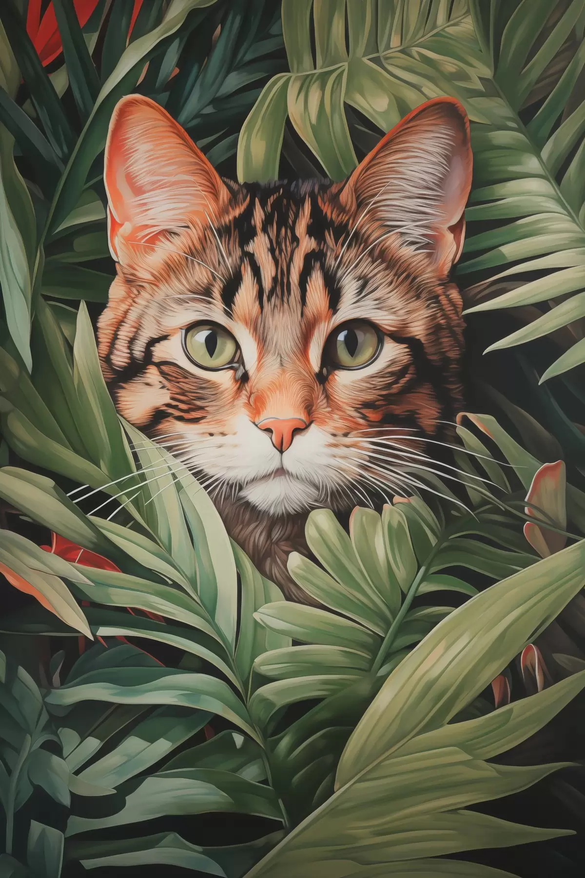 Paveikslas Katė atogrąžų lapuose Nr s42354