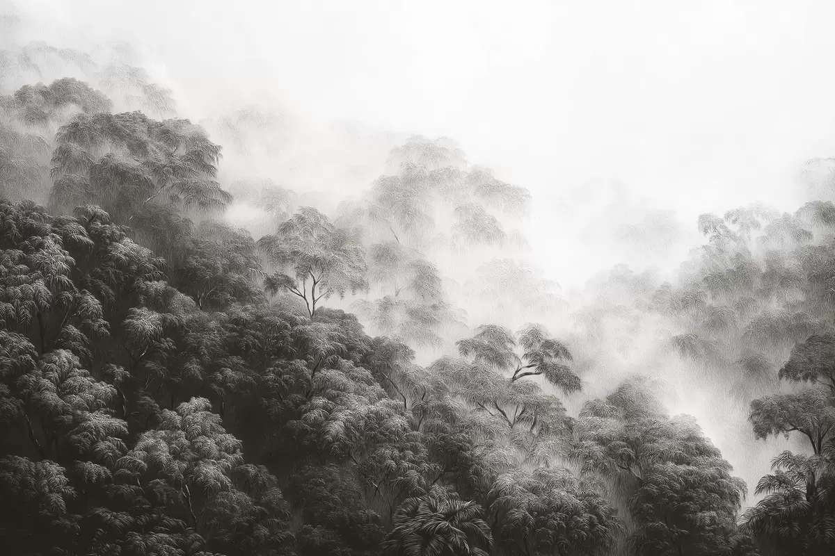 Paveikslėlis Atogrąžų miškas rūke, palmės, pilkos spalvos s42371v1