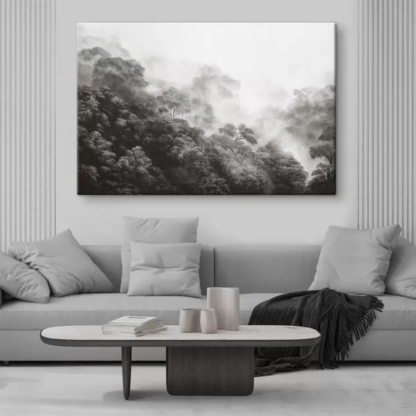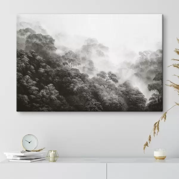 Paveikslas Atogrąžų miškas rūke, palmės, pilkos spalvos Nr s42371v1