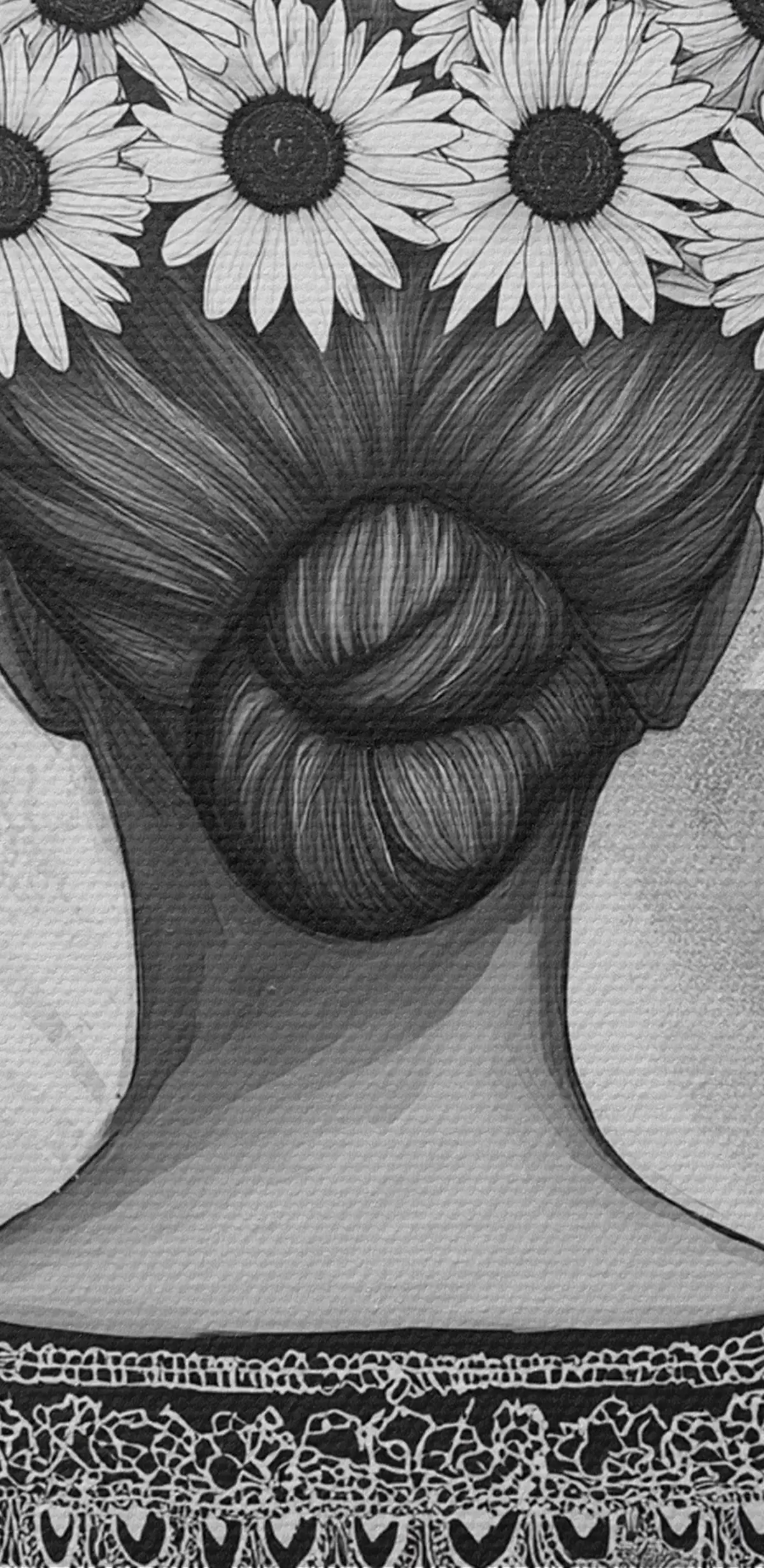 Paveikslas Trys moterys tautiniais drabužiais, pieštuko stiliaus piešinys, saulėgrąžos Nr s42377