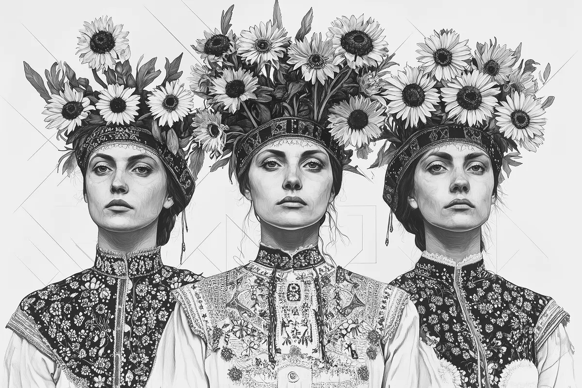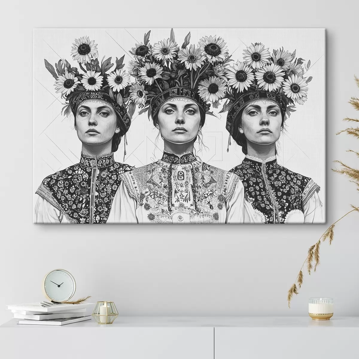 Paveikslas Ukrainiečių moterys su gėlių vainikais Nr s42379