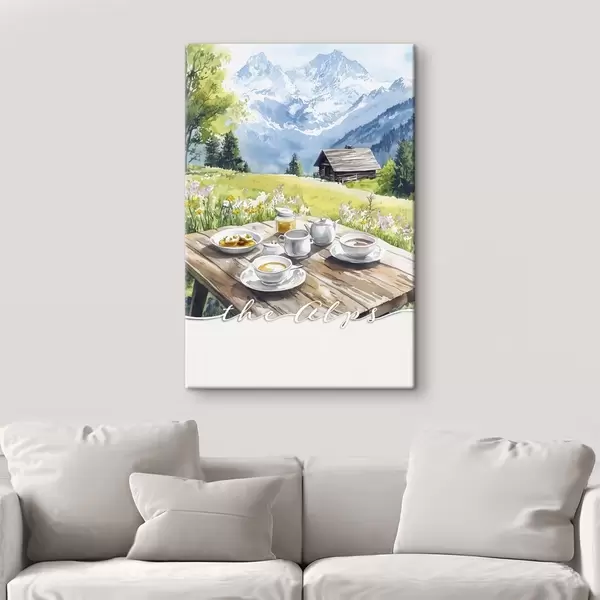 Paveikslas Alpės, gražus kalnų kraštovaizdis, vasaros gamta, medinis namas Nr s42424