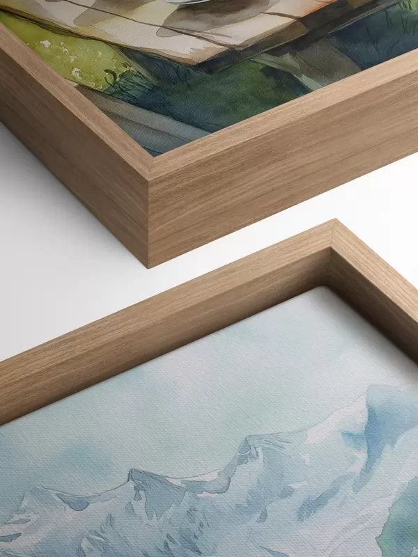 Paveikslas Pusryčiai Alpėse, kalnai, miškas, gamta, vasara, akvarelės stilius Nr s42426