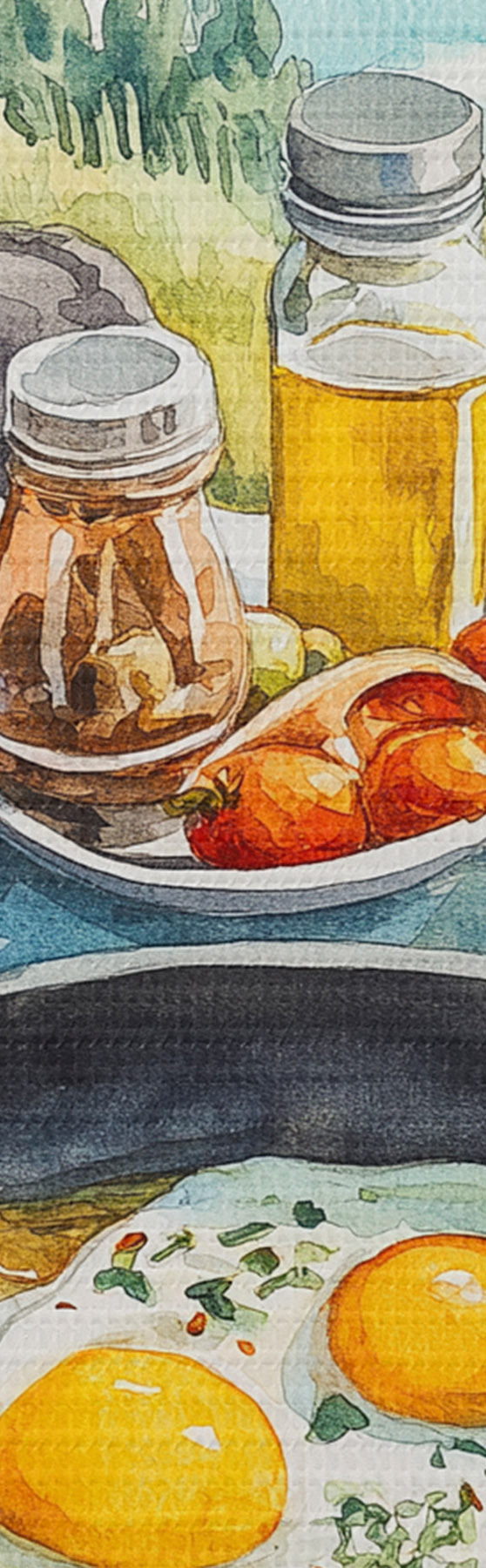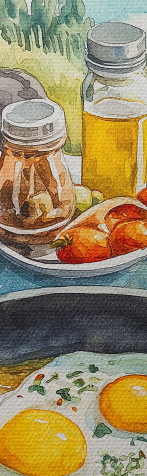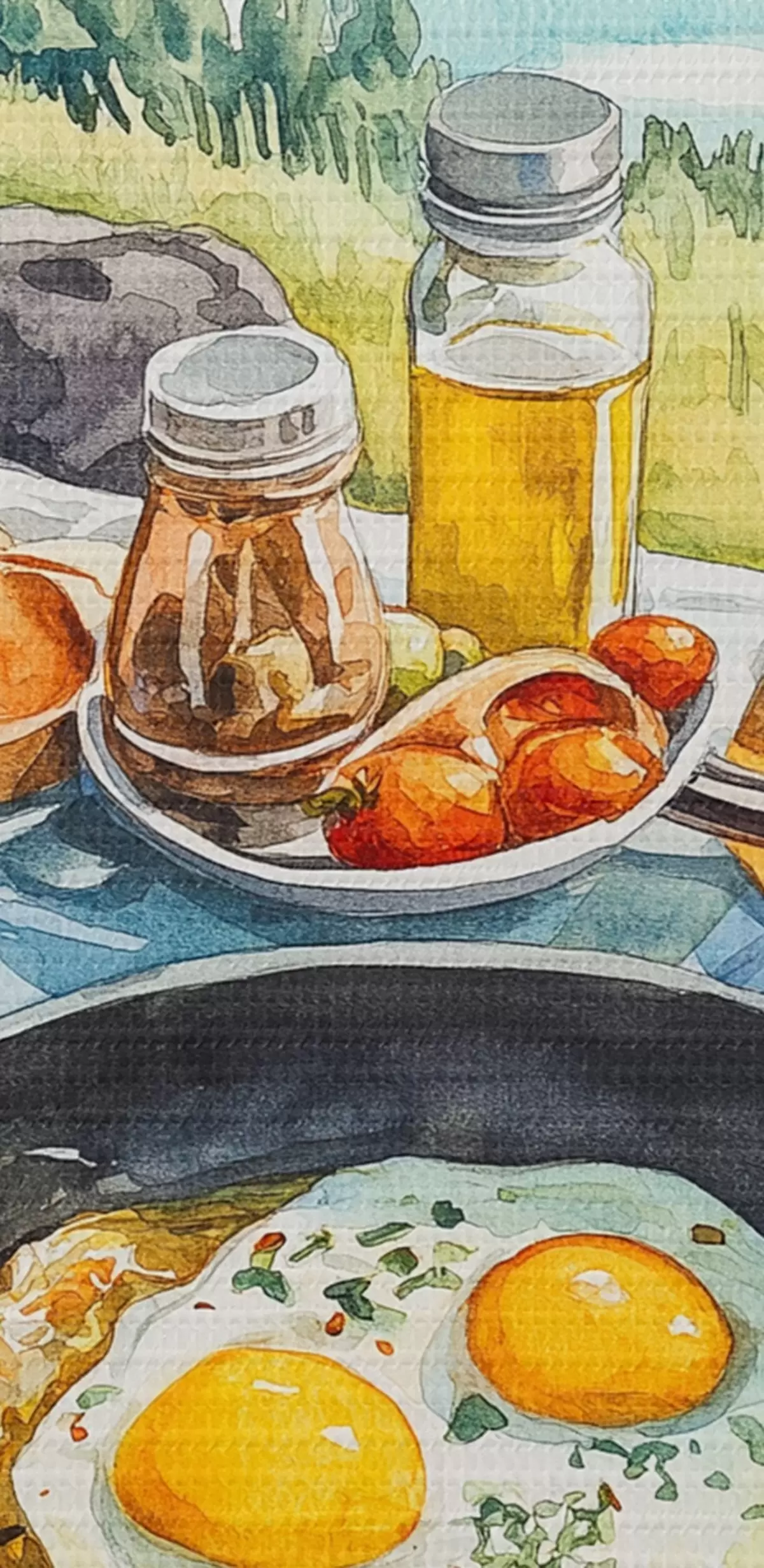 Paveikslas Estetiški pusryčiai prie ežero, akvarelės stilius Nr s42432