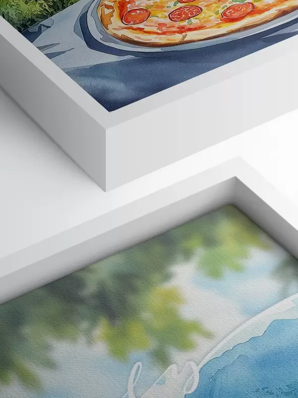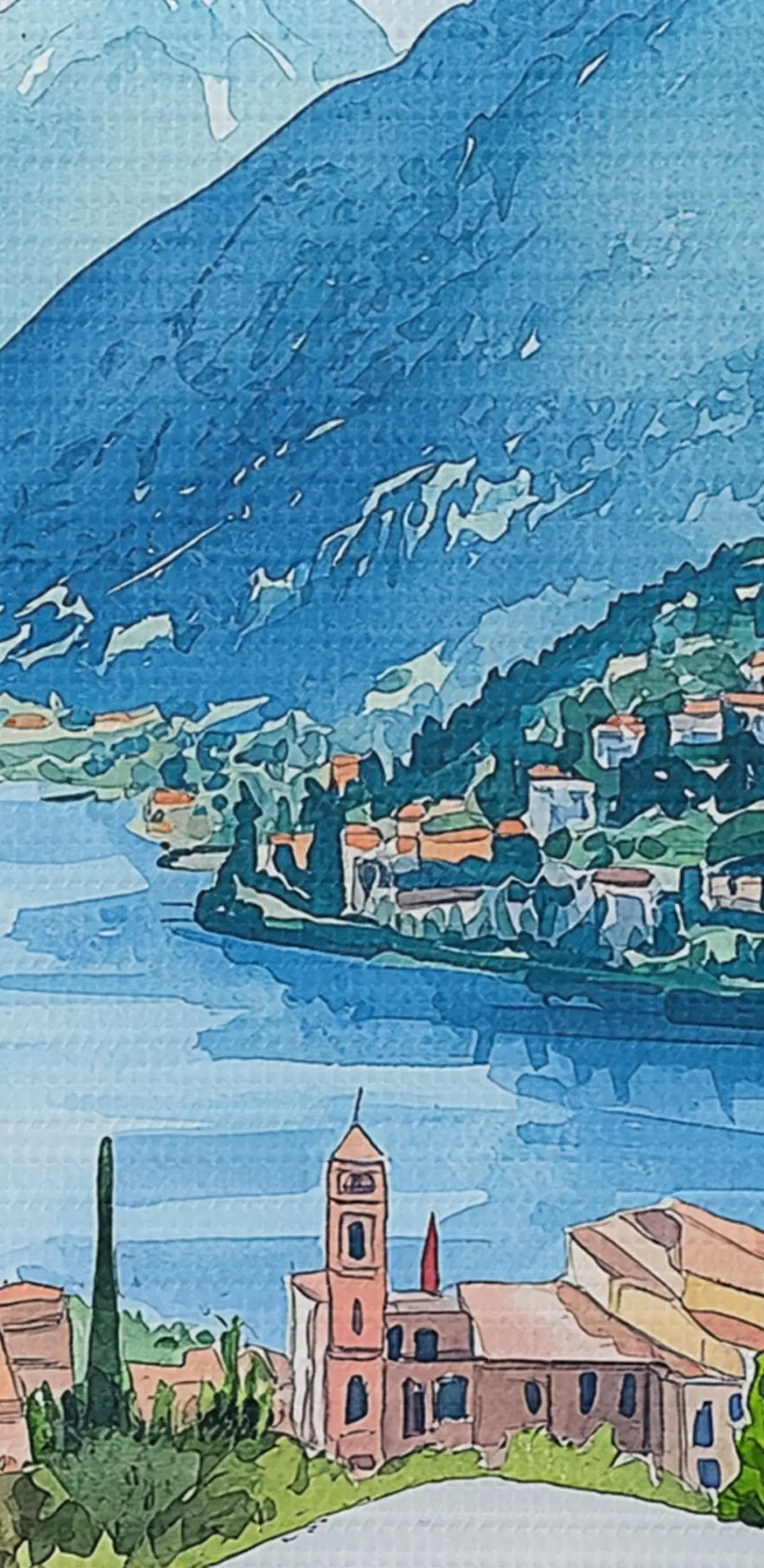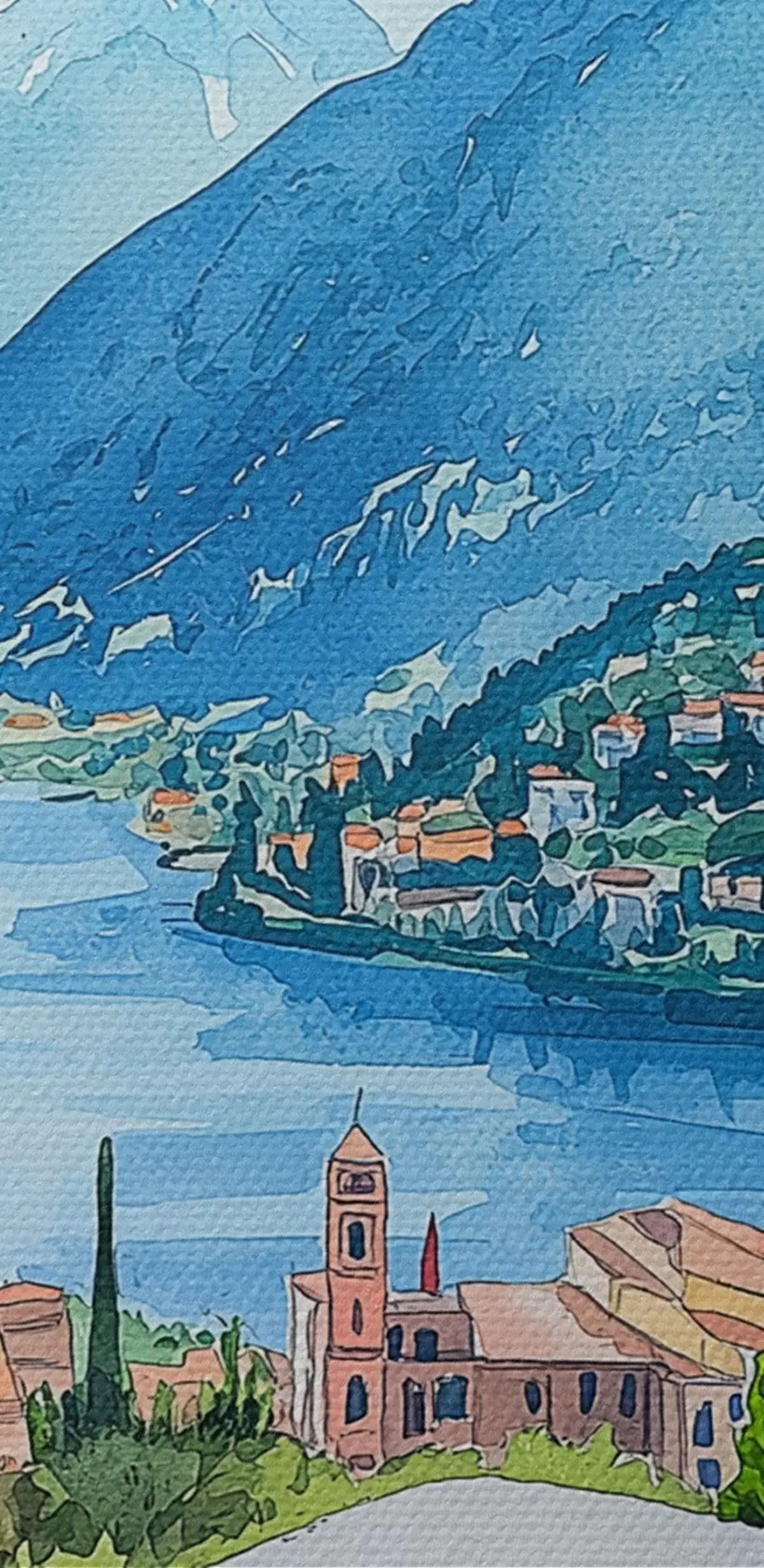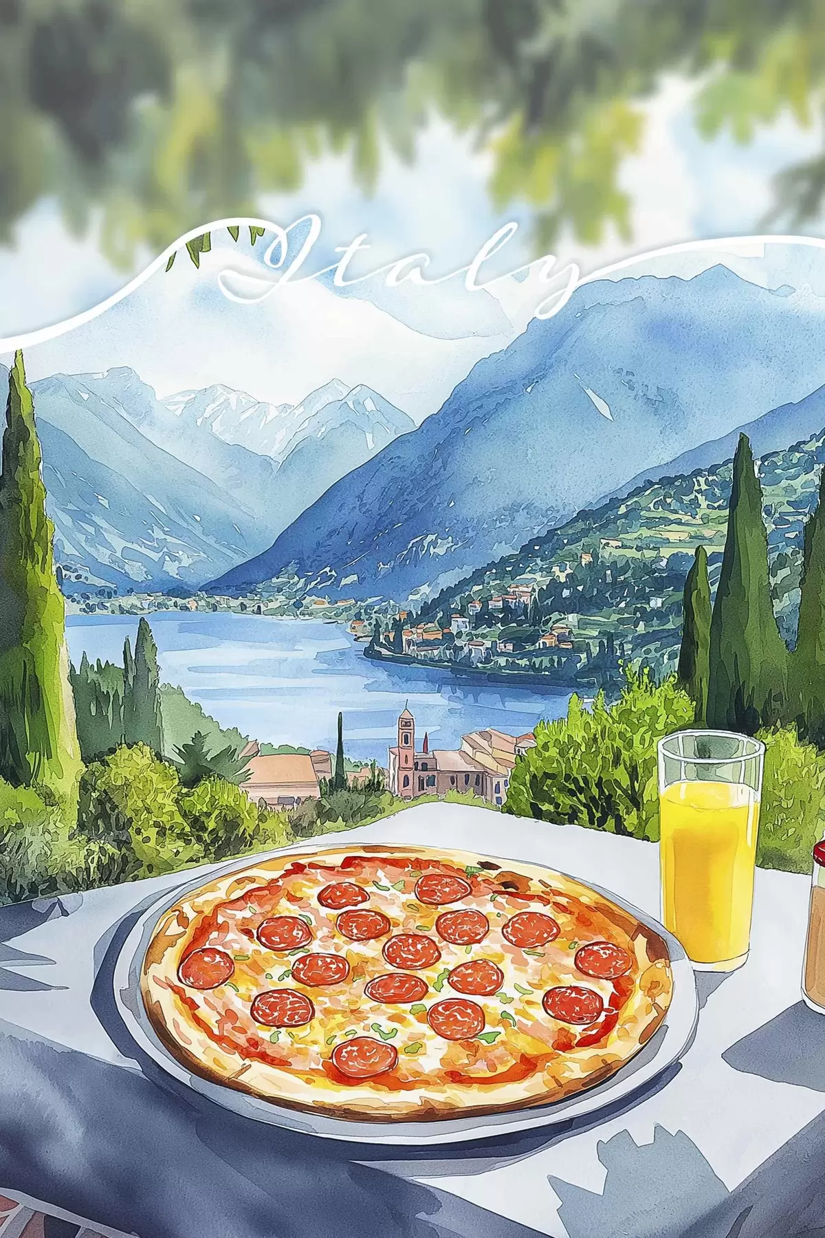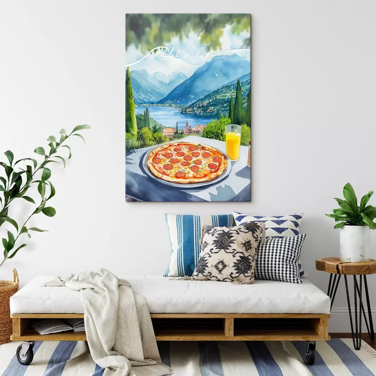 Paveikslas Akvarelės stilius, Italija, pica, senamiestis, kalnų kraštovaizdis Nr s42435