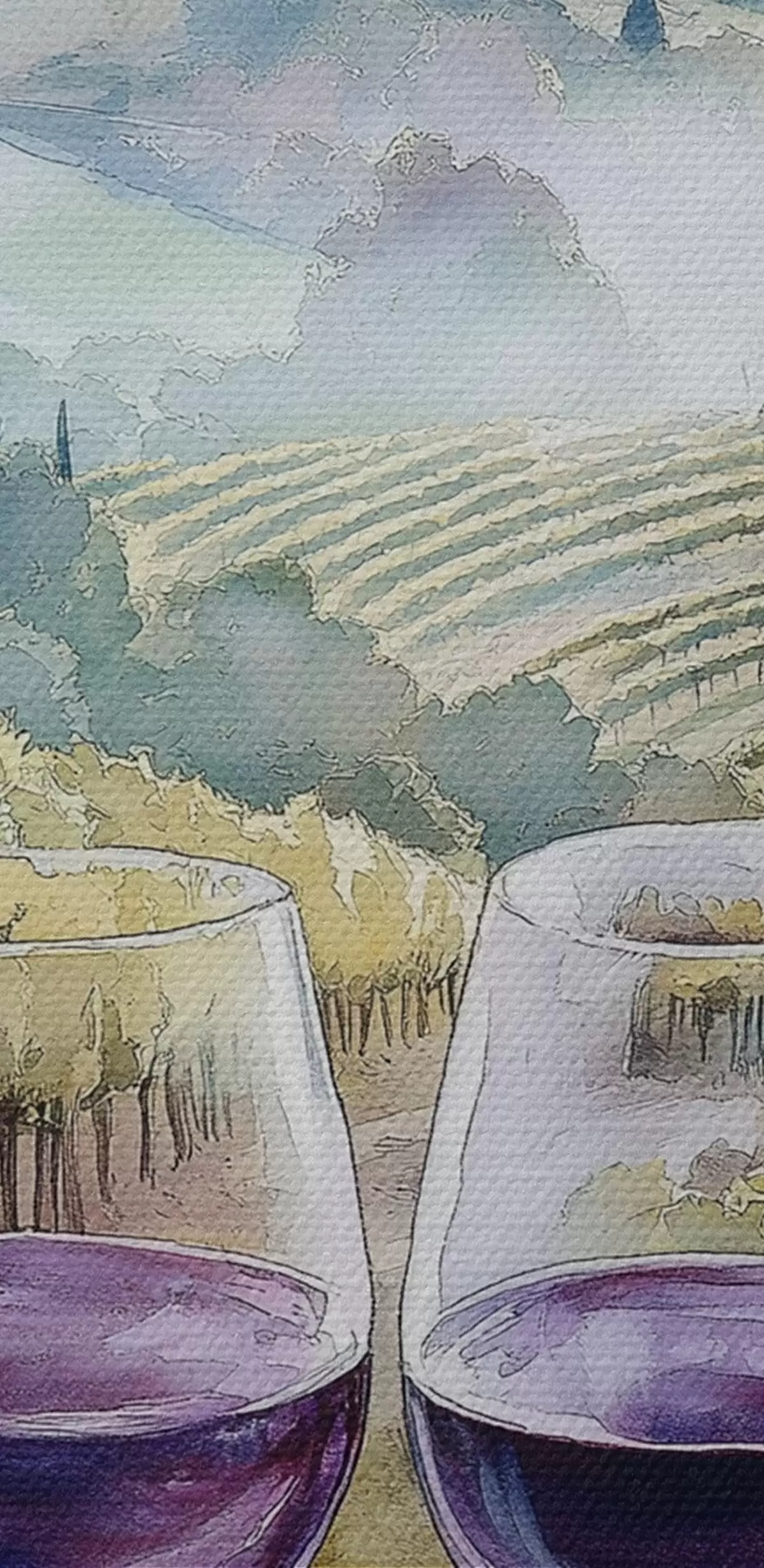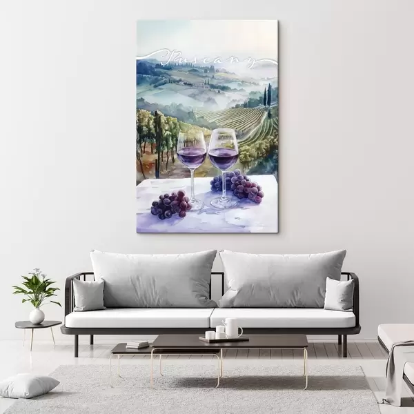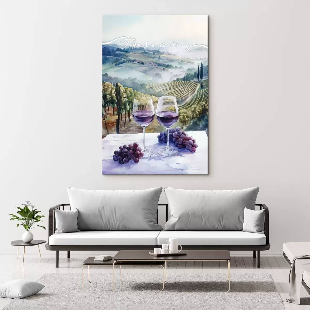 Paveikslas Akvarelės stiliaus Toskanos peizažai, vyno kiemai, vynuogės Nr s42440