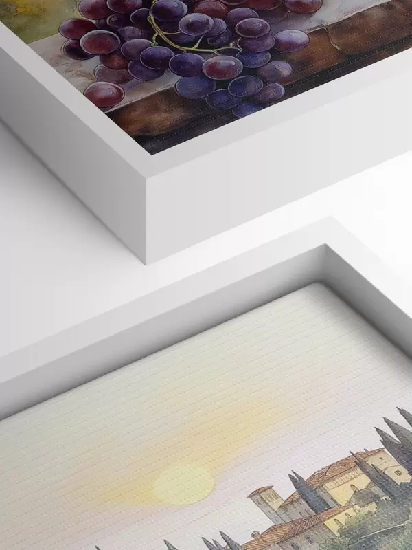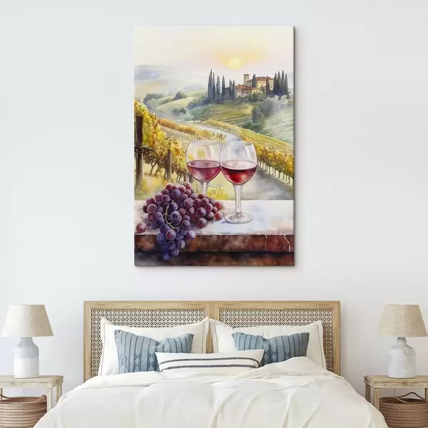 Paveikslėlis Saulėlydis Toskanoje, vyno darykla, senoji architektūra, akvarelės stilius, Italija s42446