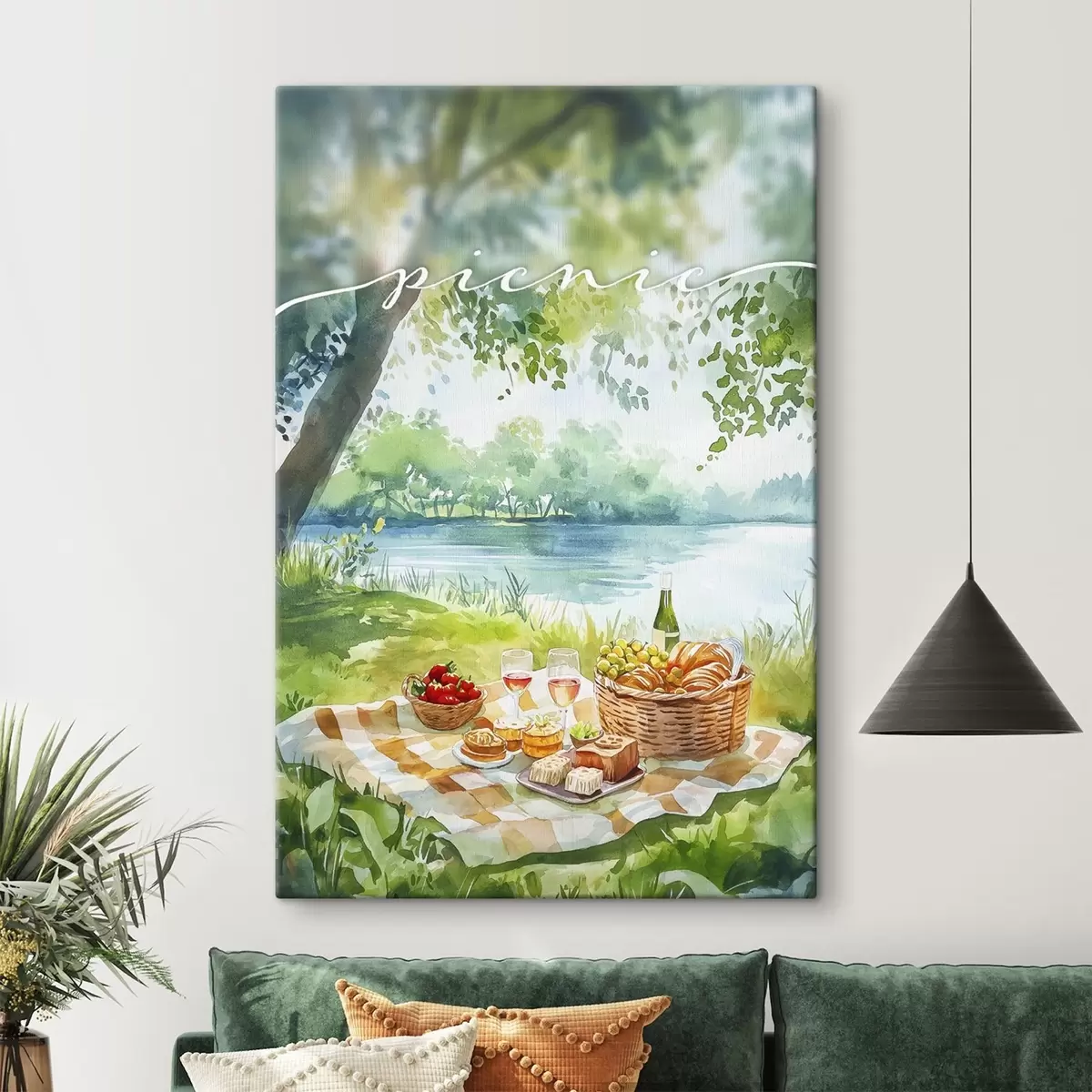 Paveikslas Pikniko estetika, vasaros gamta, ežeras, romantiškas, akvarelės stilius Nr s42450