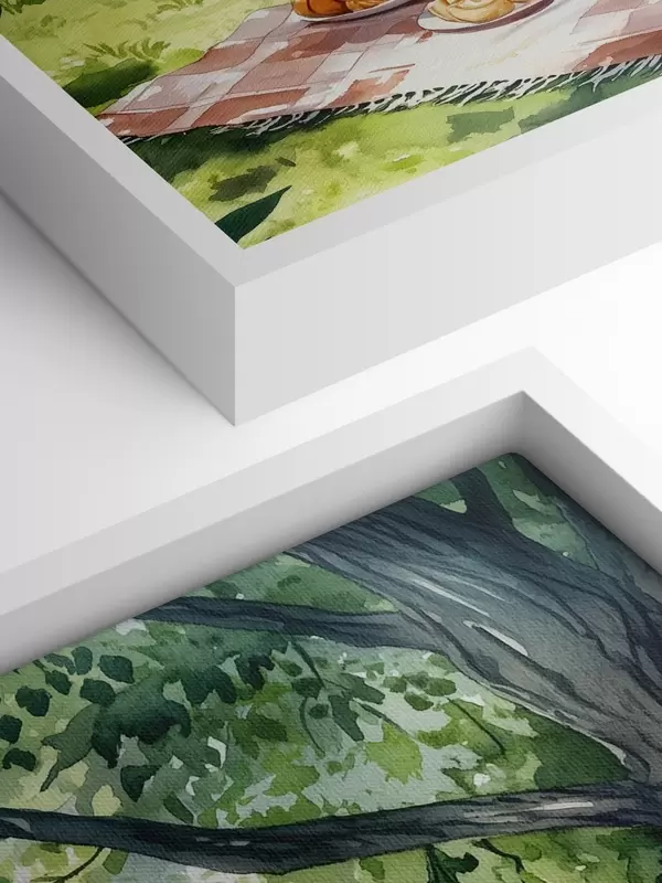Paveikslas Gražus romantiškas piknikas prie vasaros ežero, vaisiai, žaluma Nr s42451