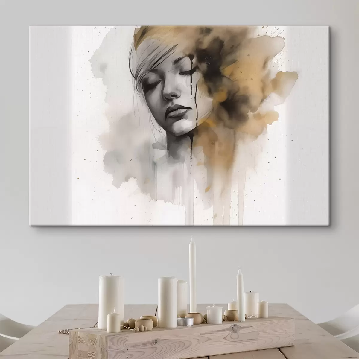 Paveikslas Mergaitės portretas akvarelės technika su abstrakčiais šešėliais Nr s42474
