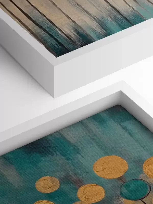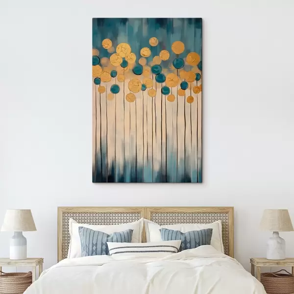 Paveikslas Dekoratyvi abstrakcija su apvaliais elementais mėlyname ir smėlio spalvos fone Nr s42476