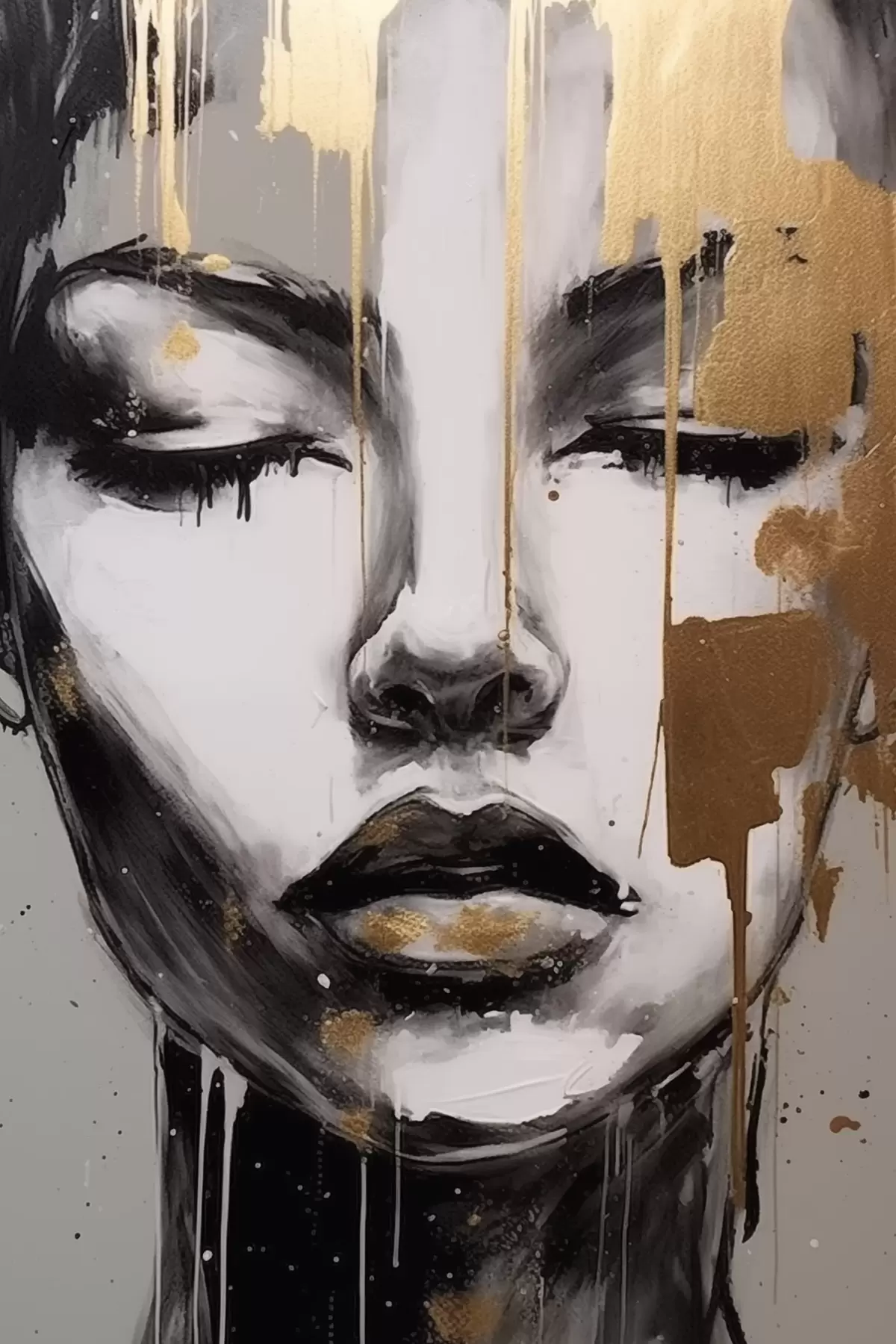 Paveikslas Juodai baltas portretas su abstrakčiais elementais Nr s42481