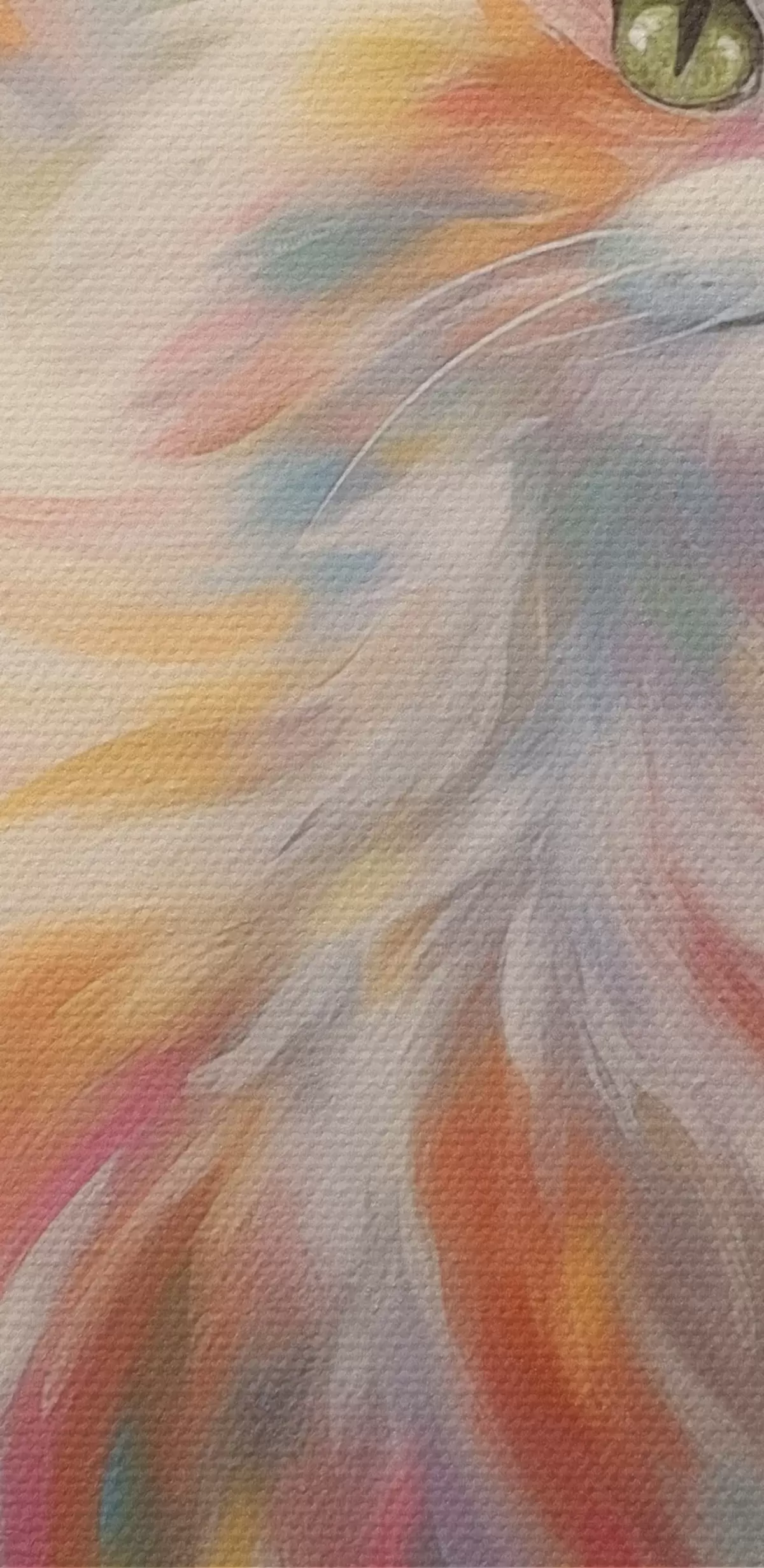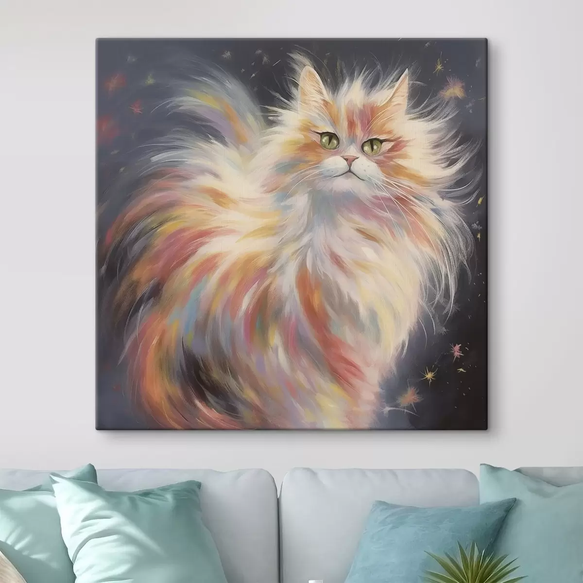 Paveikslas Pūkuota katė su spalvingu kailiu tamsiame fone Nr s42484