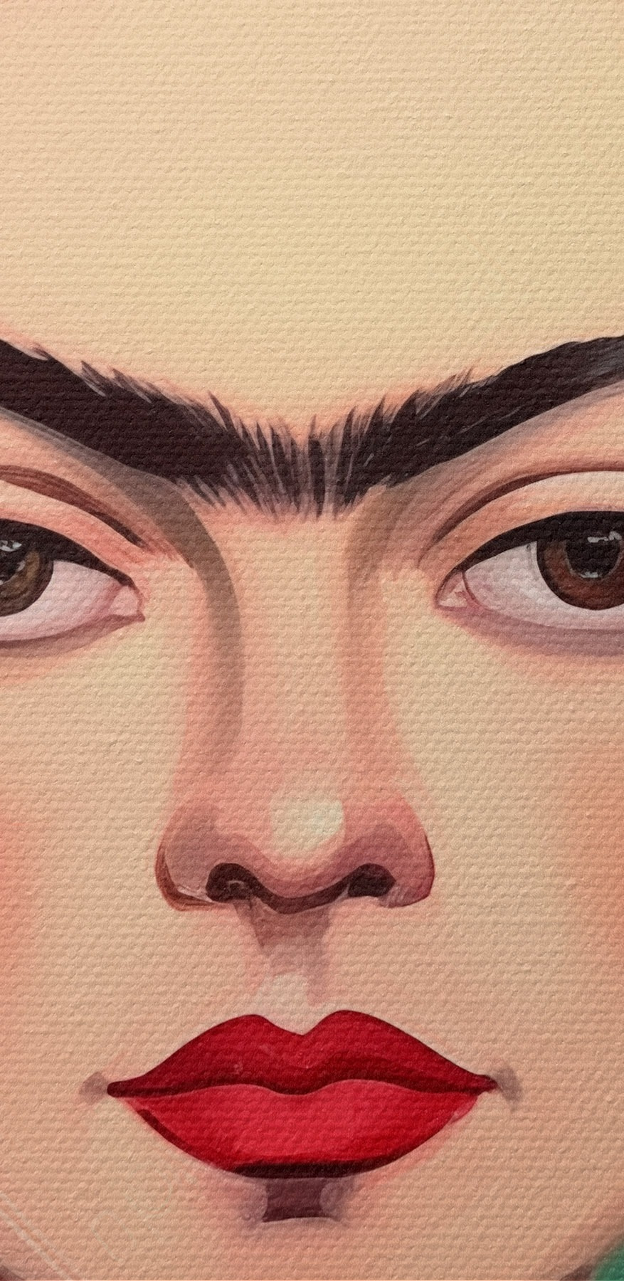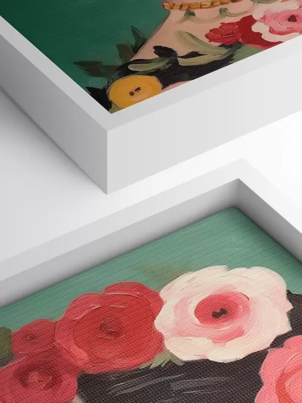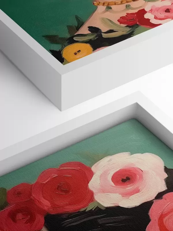 Paveikslas Fridos portretas su gėlių vainiku žaliame fone Nr s42485