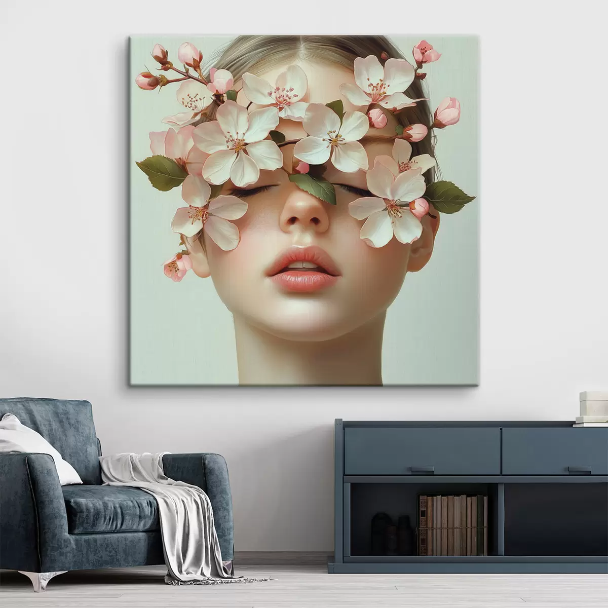 Paveikslas Mergaitės su gėlėmis ant veido portretas Nr s42506