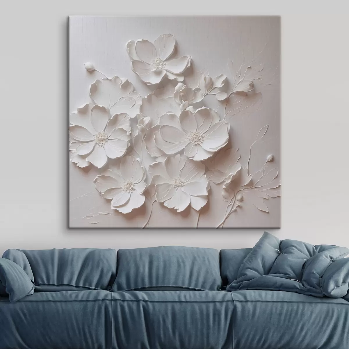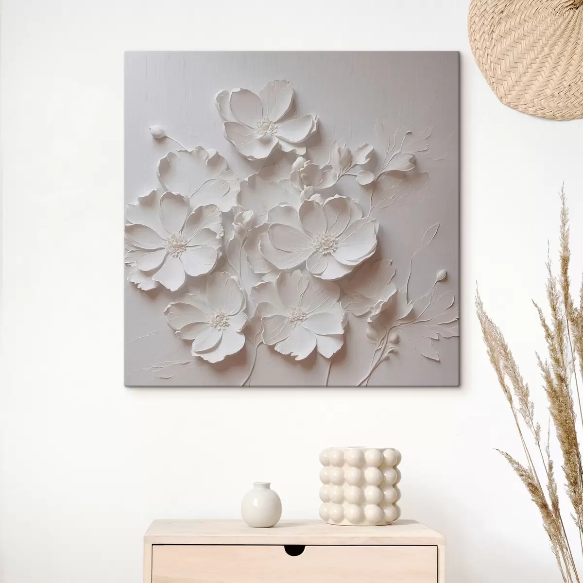 Paveikslas Baltos gėlės baltame fone aliejinės tapybos stiliumi Nr s42516