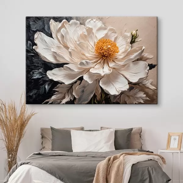 Paveikslas Balta gėlė juodame ir smėlio spalvos fone Nr s42522