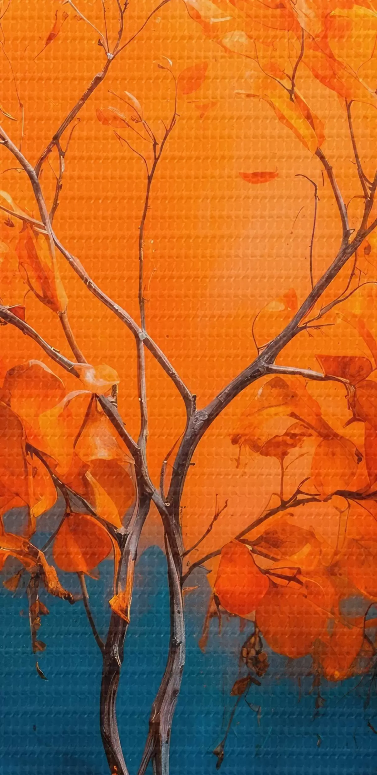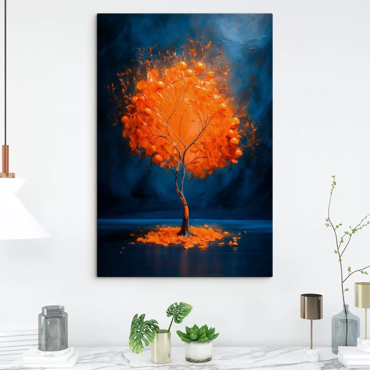 Paveikslas Oranžinis medis mėlyname fone akrilo tapybos stiliumi Nr s42525