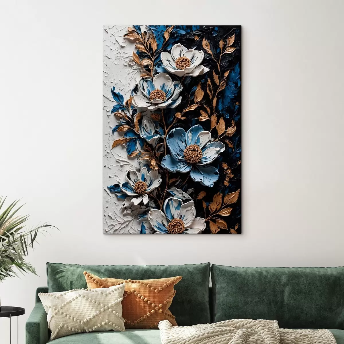 Paveikslas Gėlės ir stiebai juodai baltame fone aliejinės tapybos stiliumi Nr s42532