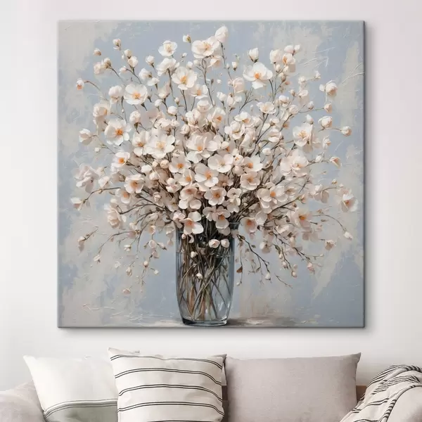 Paveikslas Baltos gėlės skaidrioje vazoje Nr s42547