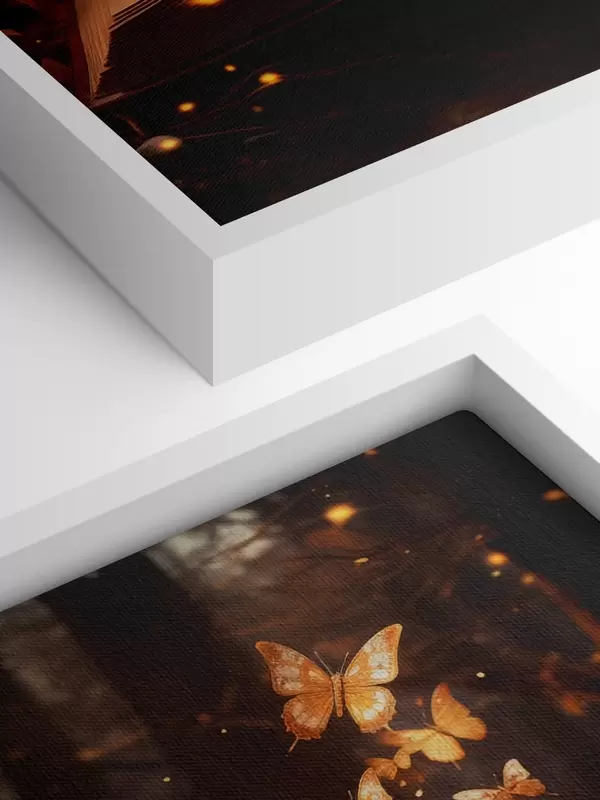 Paveikslas Atversta knyga, iš kurios tamsiame stebuklingame miške šviesos spinduliais šviečia švytintys drugeliai. Nr s42573