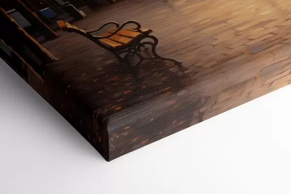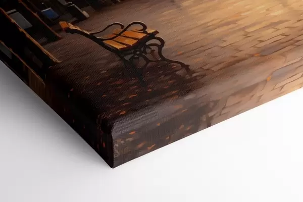 Paveikslas Ruduo Paryžiuje su vaizdu į Eifelio bokštą, Senos krantais, padengtais lapais, suoliukais ir gatvių žibintais, kurie prisideda prie romantiškos atmosferos. Nr s42577