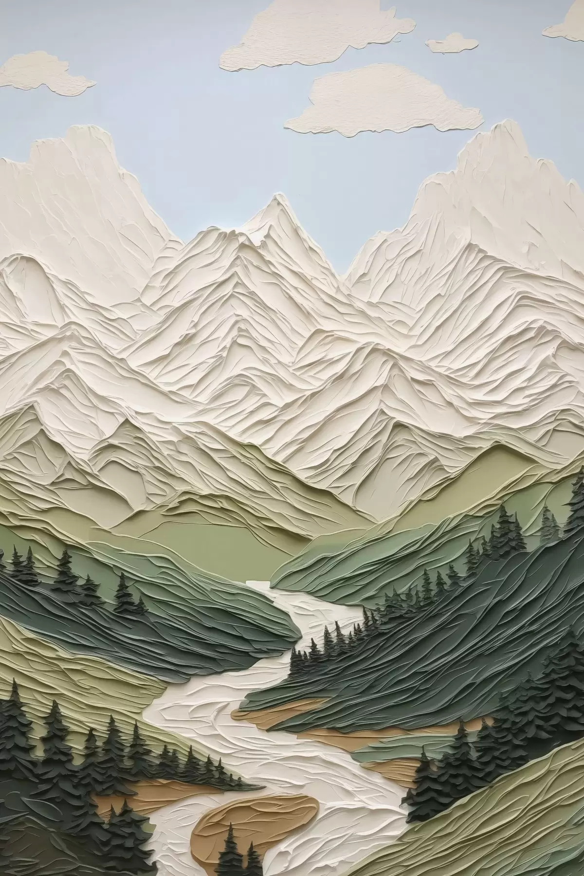 Paveikslas Kalnų kraštovaizdžio imitacijos potėpiai teptuku Nr s42590
