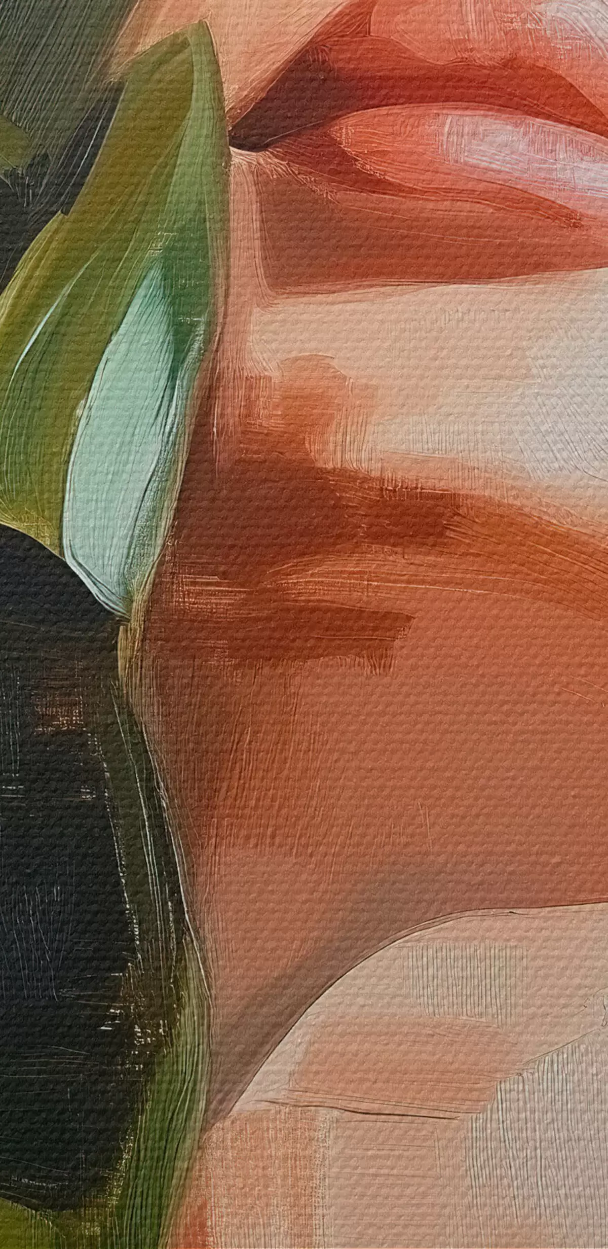 Paveikslas Moters su monsteros lapu portretas su teptuko potėpių imitacija Nr s42597