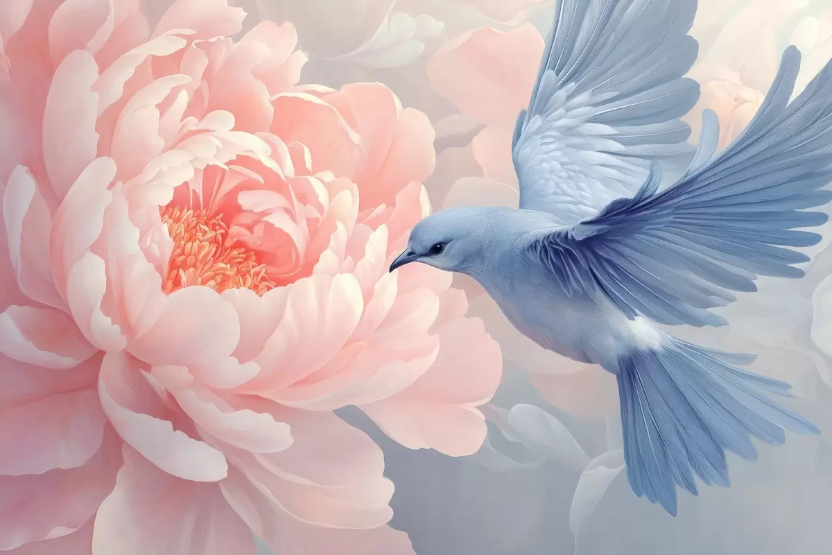 Paveikslas Mėlynas kolibris ir bijūnas Nr s42618