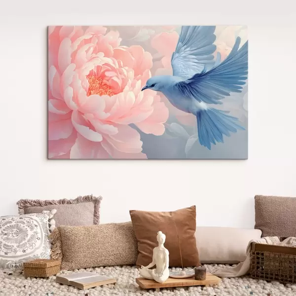 Paveikslas Mėlynas kolibris ir bijūnas Nr s42618