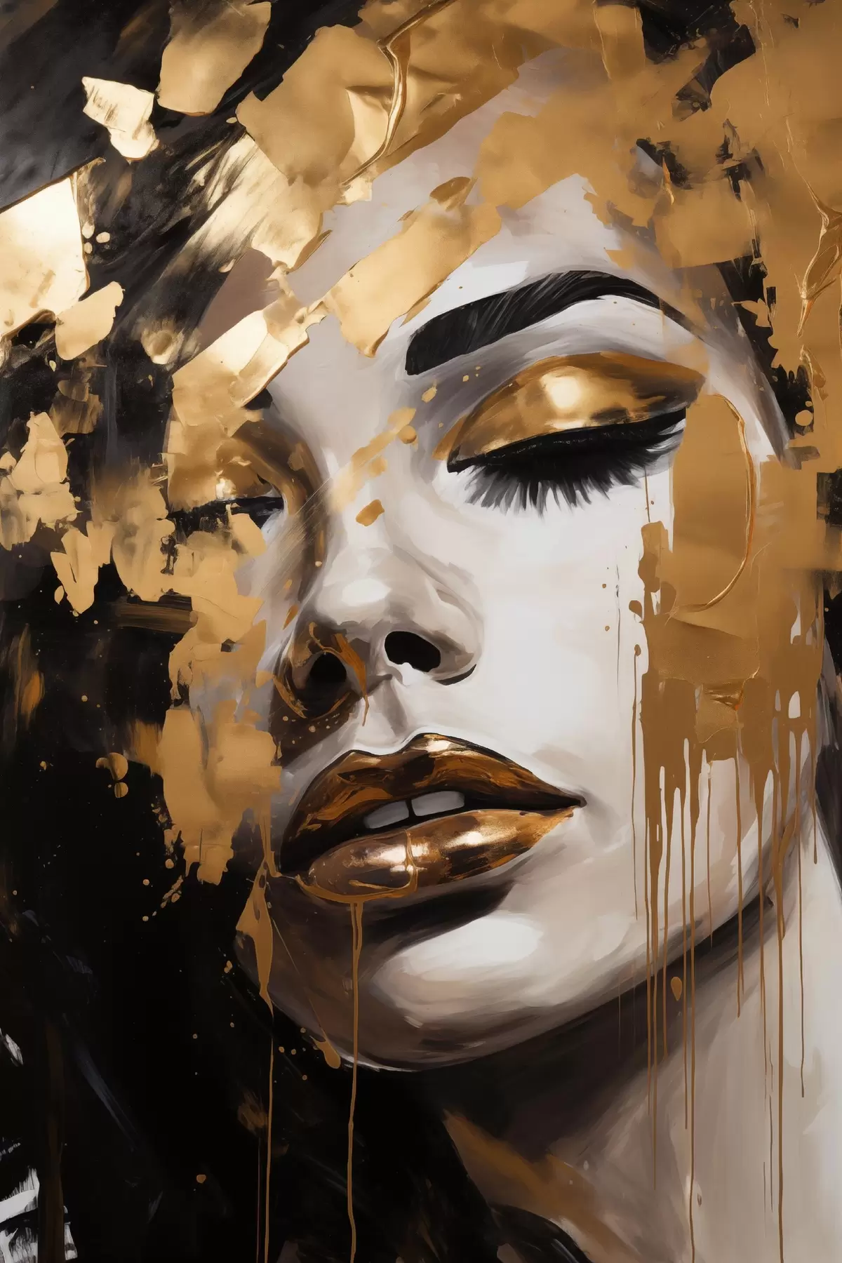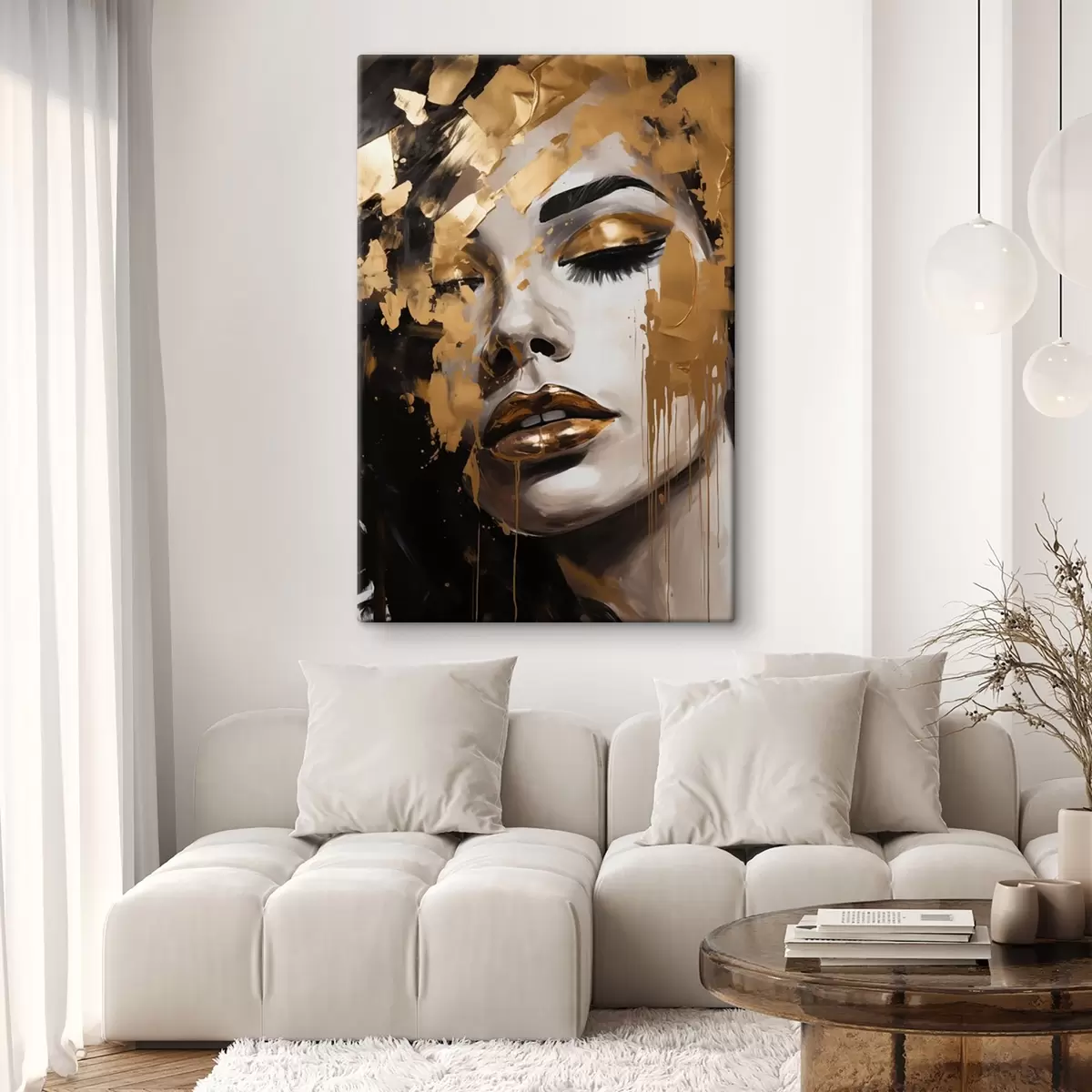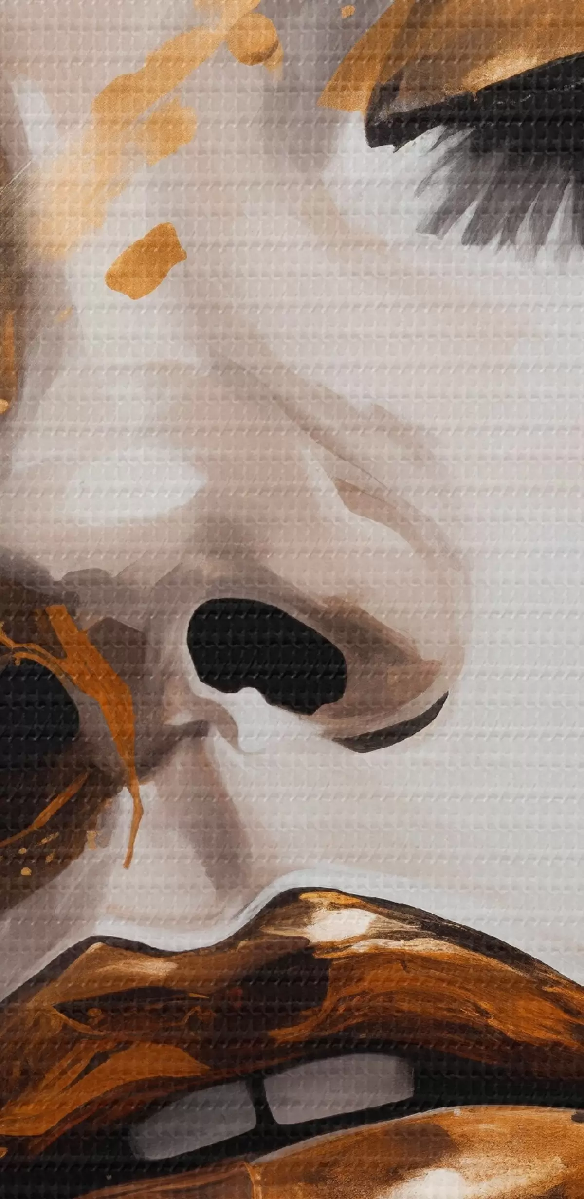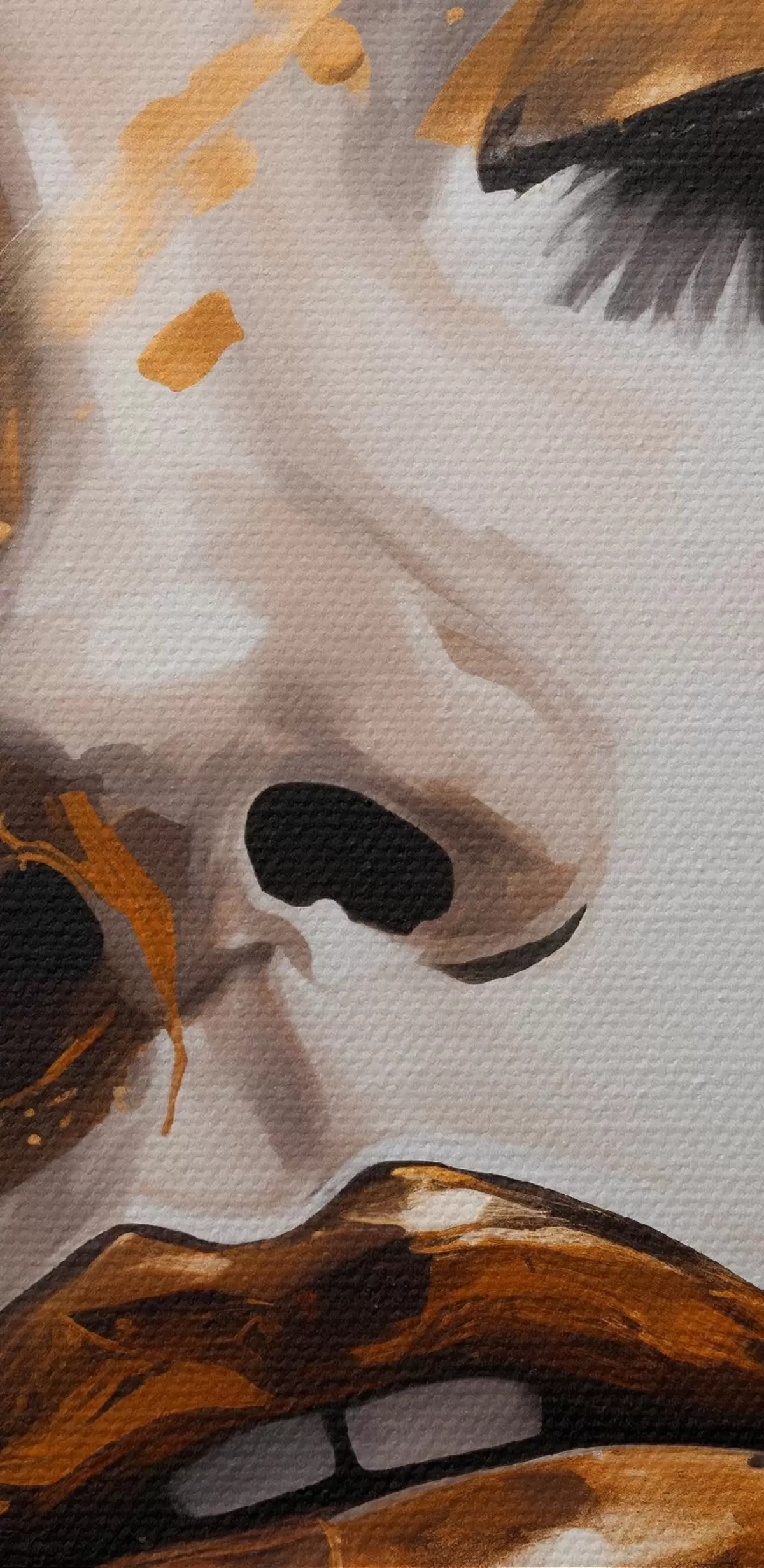 Paveikslas Abstraktus moters portretas su sodriais teptuko potėpiais ir šiltais tonais, sukuriantis ryškų ir dramatišką vaizdą. Nr s42619