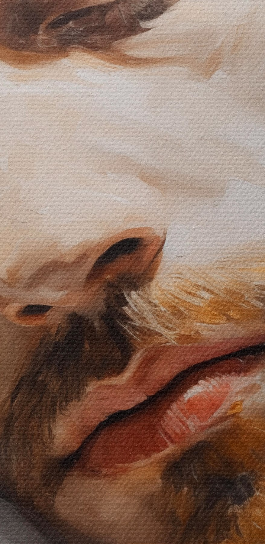 Paveikslas Abstraktus vyro užmerktomis akimis portretas, nutapytas švelniais šiltais tonais, švelniais teptuko potėpiais, kurie sukelia ramybės pojūtį. Nr s42621
