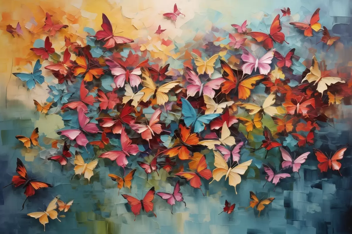 Paveikslas Įvairiaspalvių aliejinės tapybos imitaciją imituojančių drugelių masyvas Nr s42728