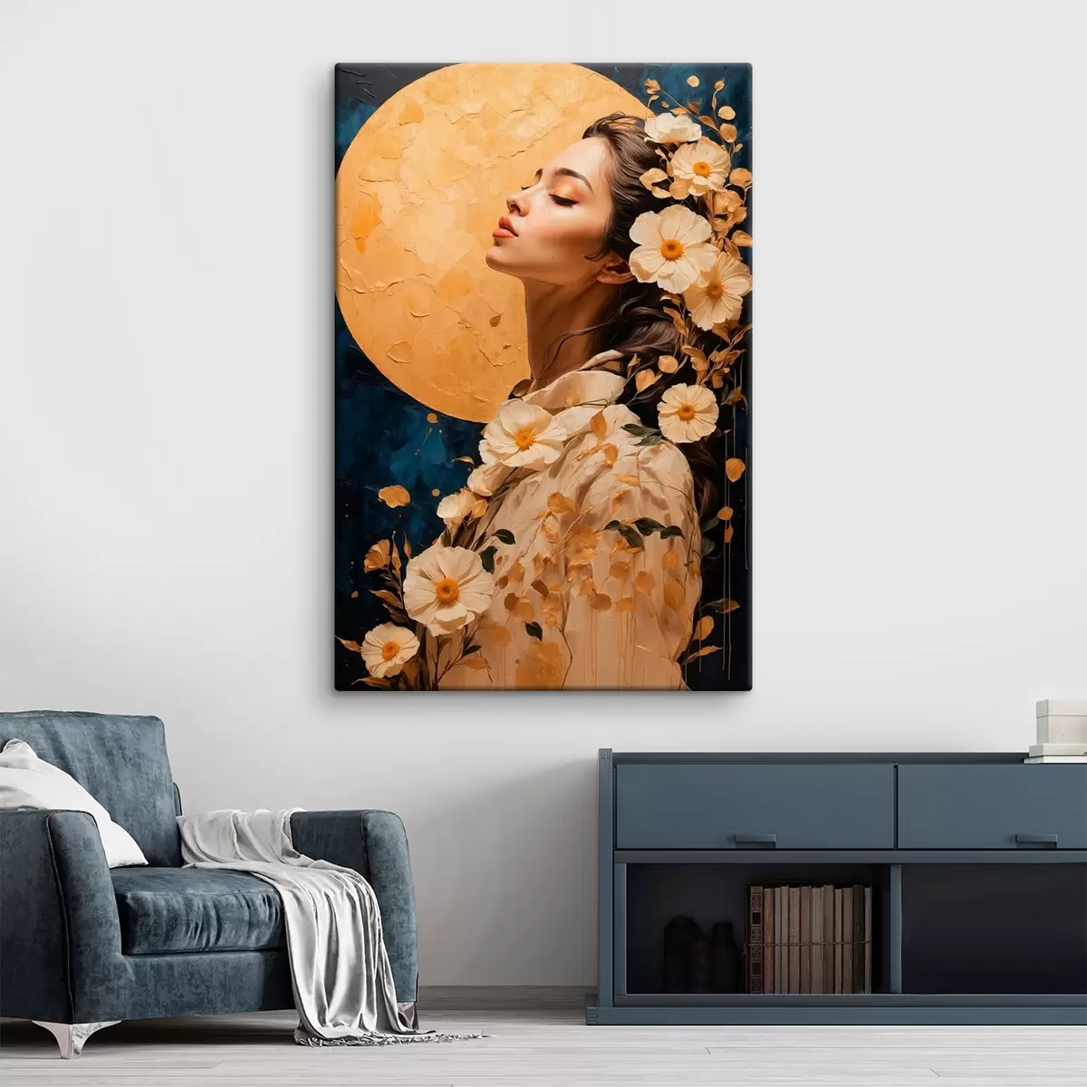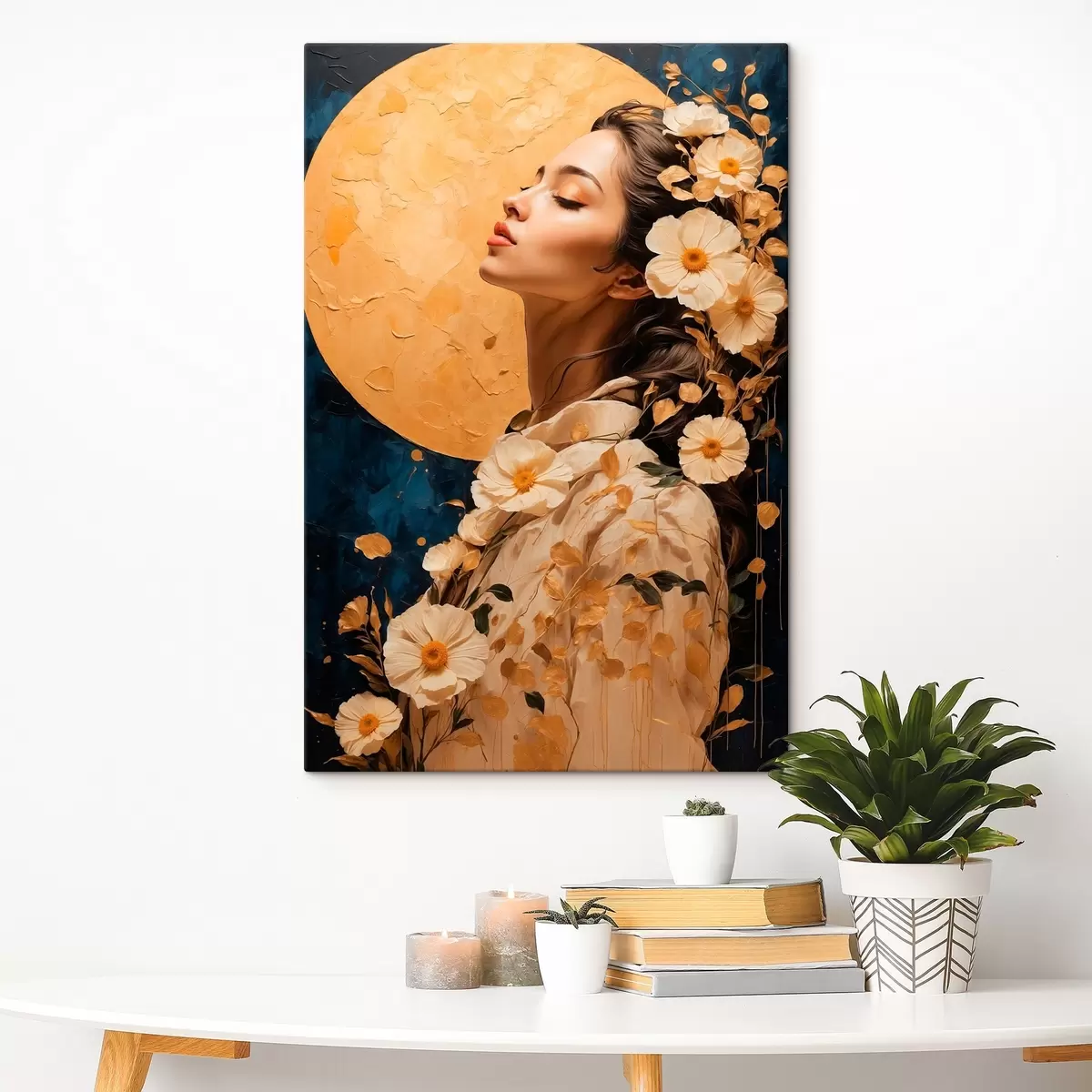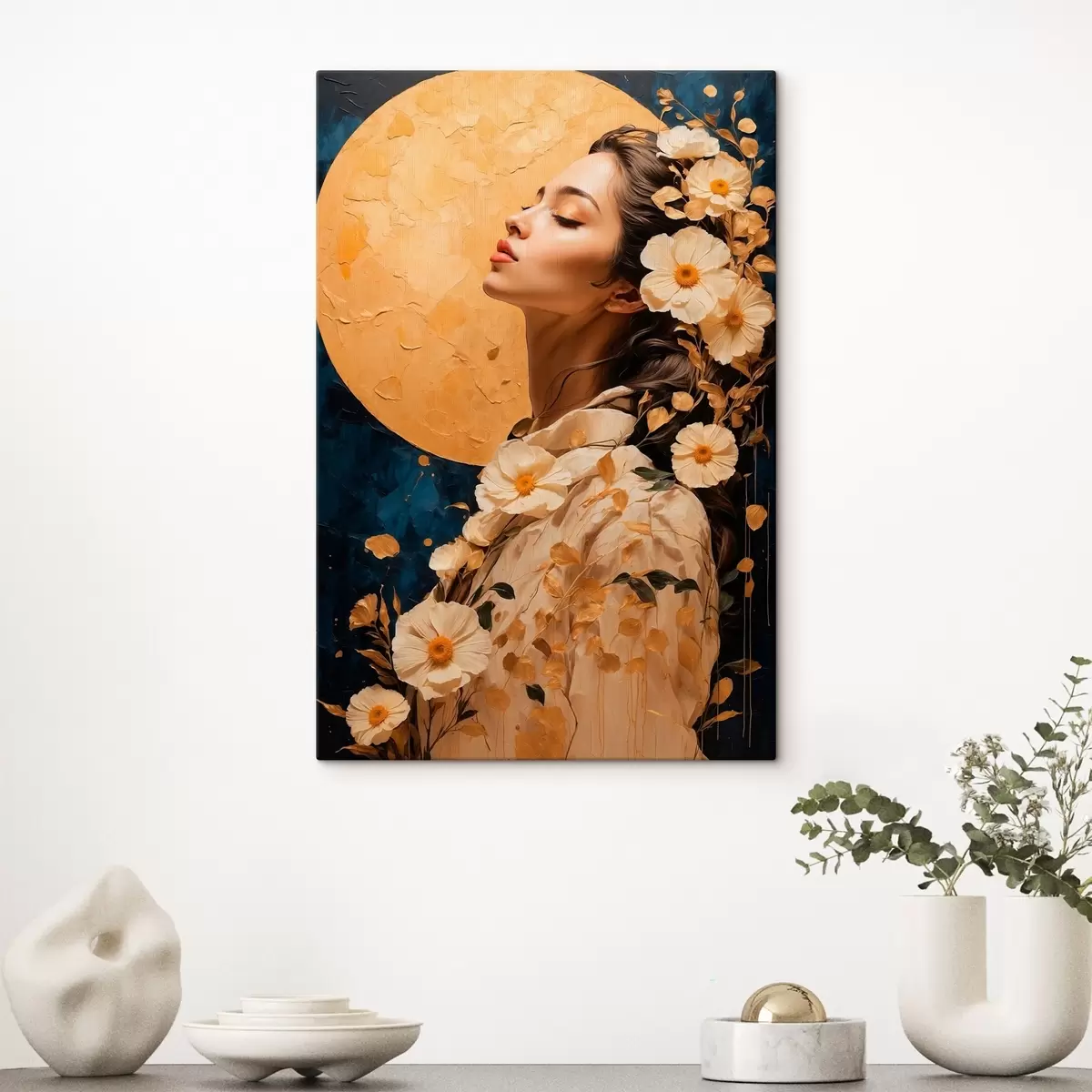 Paveikslas Mergina su gėlėmis prieš mėnulį Nr s42774